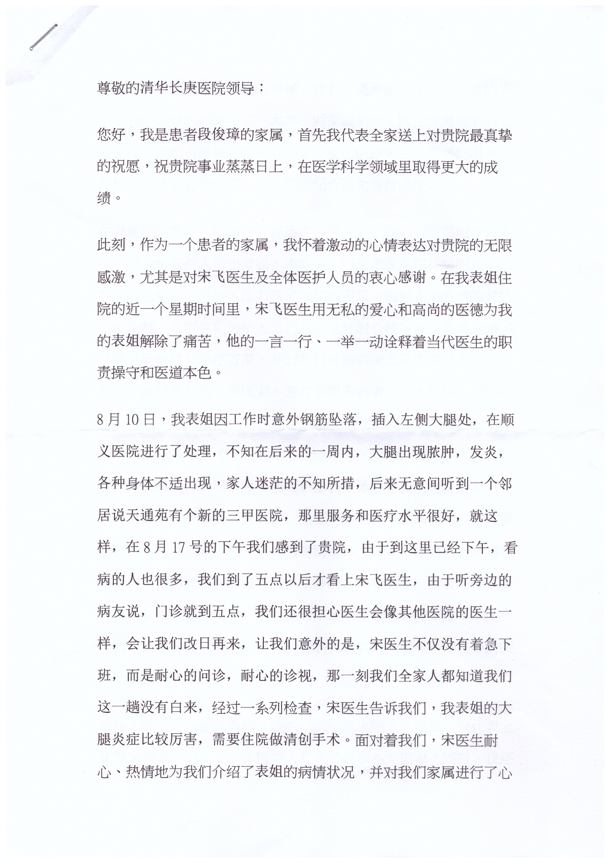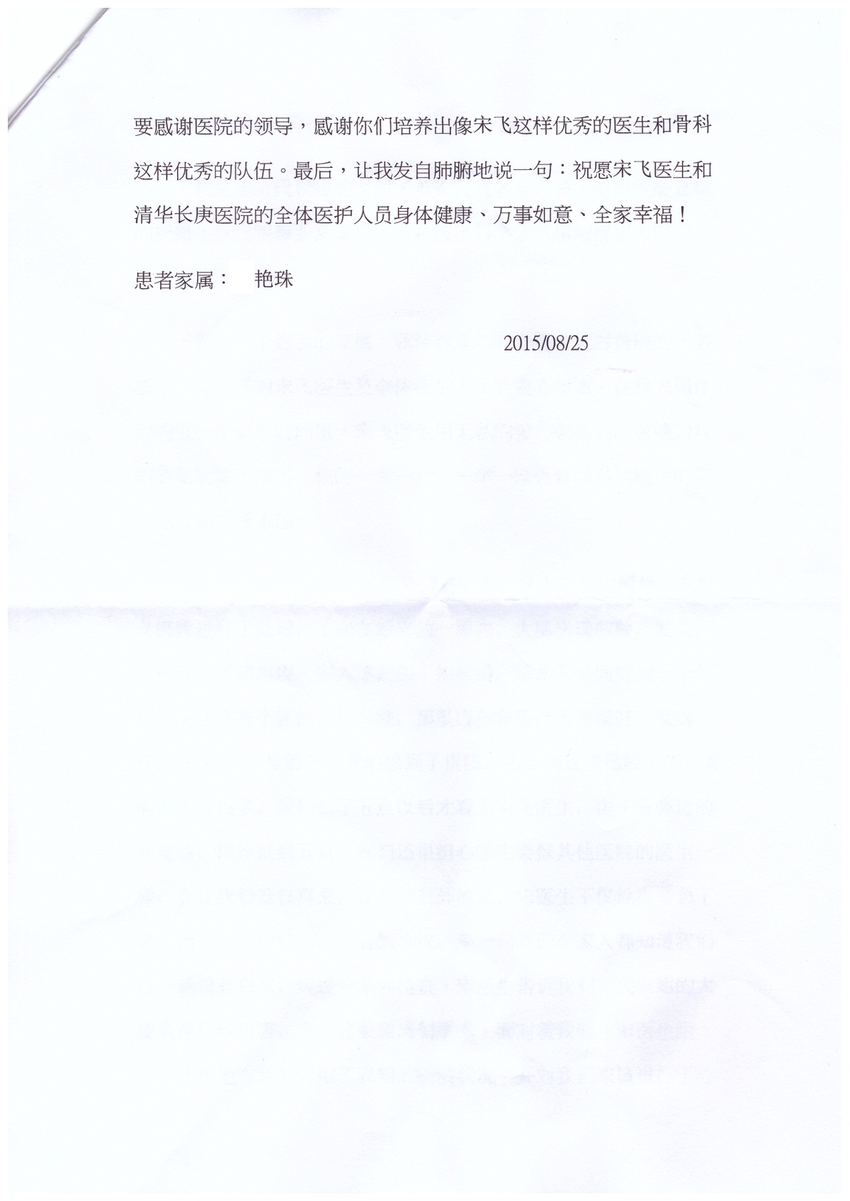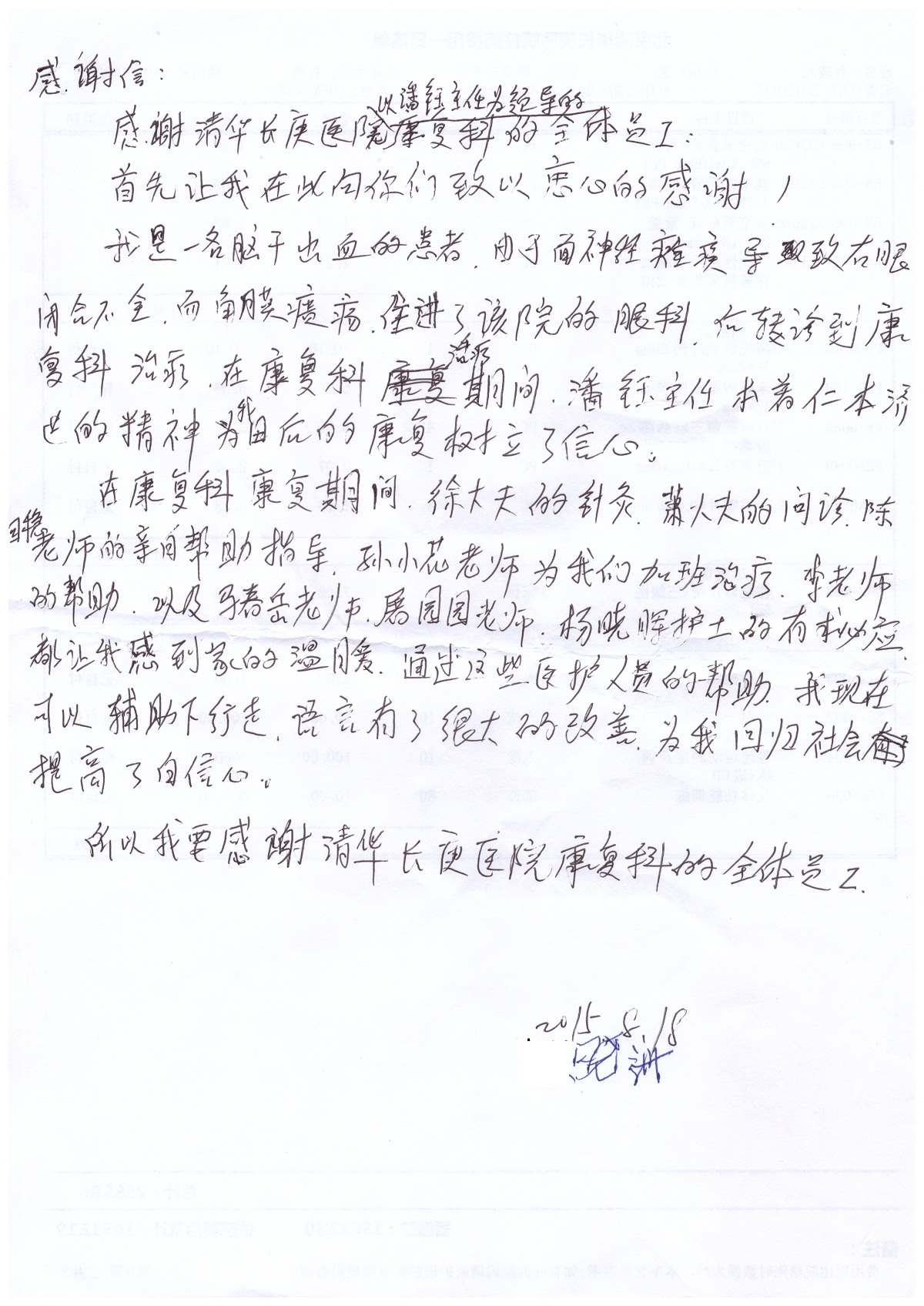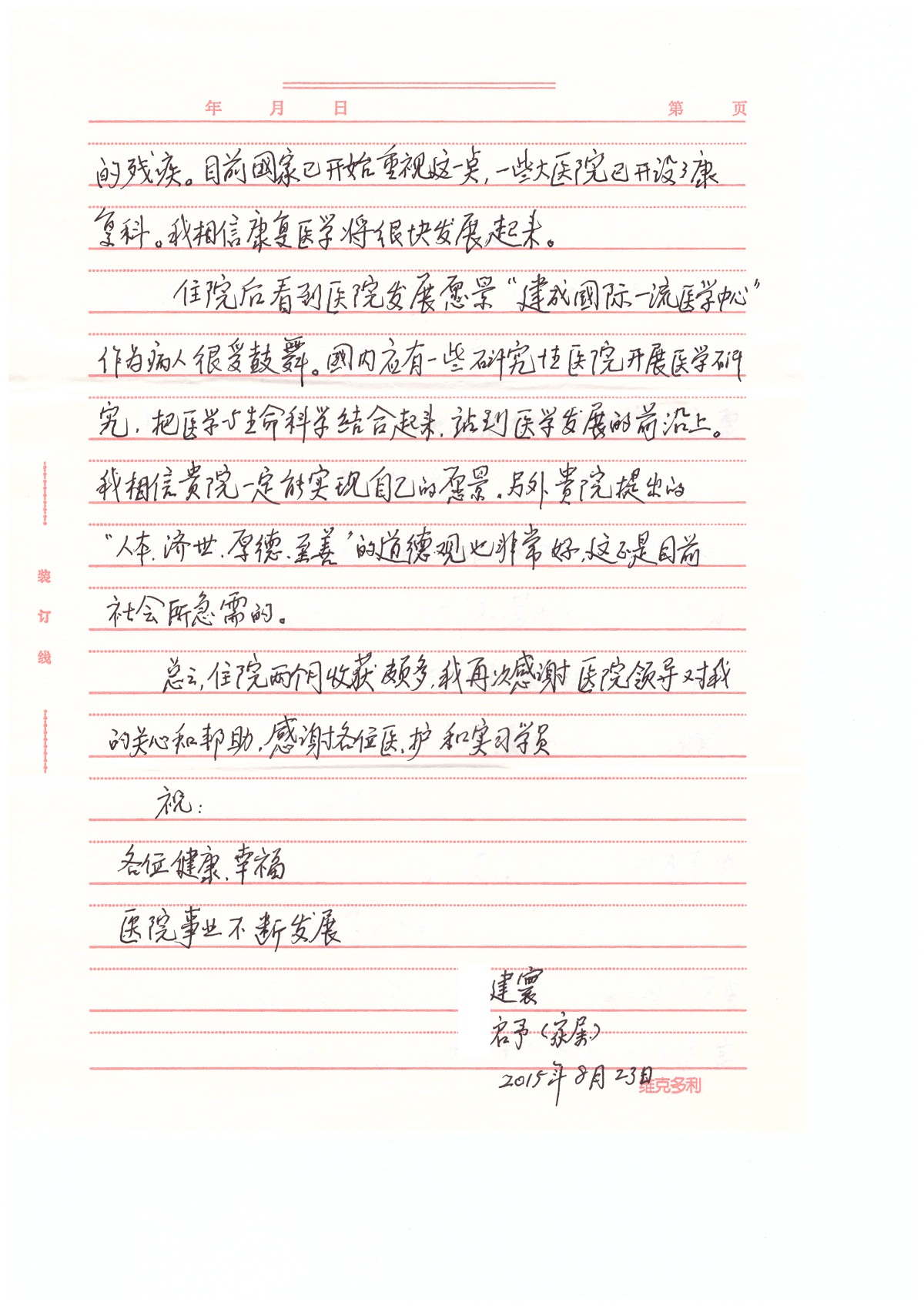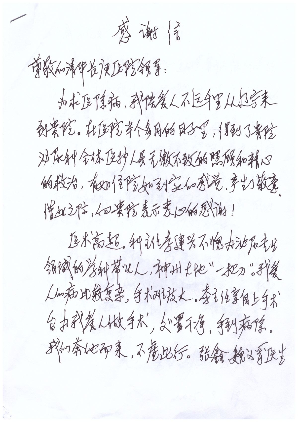 2015年8月,我院共接到患者及家属感谢信23封、锦旗4面,其中妇产科廖秦平主任、张蕾副主任医师、刘瑛医师,泌尿外科李建兴主任、张鑫副主任医师、魏义医师,神经外科王贵怀主任、杨世伟医师,肾脏内科李月红主任、王燕婴医师,消化内科相马宁主任医师、任渝棠医师,眼科胡运韬主任,儿科季丽娜副主任医师,心脏内科缪国斌副主任医师,普外科蔺宏伟副主任医师、孙孝文医师,骨科宋飞医师,ICU李灏医师,血液内科于凡医师,整形外科田金翌医师,康复医学科潘钰主任、萧演清医师、徐泉医师、陈固稳治疗师、孙小花治疗师、尹航治疗师、马春岳治疗师、李颜杝治疗师、屠媛媛治疗师,医事处陈佳欣,护理部王钰宁护师、李娜护师、辛扬眉护师、程美玲护师、侯多朵护师、孔君君护师、于小梅护师、宋辉辉护师、张慧文护师、方玲护师、吴琼护师、许平平护师、孙洁护士、齐甜甜护士、杨晓辉护士、李亚灵护士、覃丽妮护师、郝萍护士、田静静护士、荆红英护士、刘淼护士、谢兰兰护士、曹齐菲护士、李亚灵护士、谢娟娟护士、林景熠护士、季静护士、代海栾护士及ICU、6B、7A、7B病房全体护理人员收到具名表扬。特此公告,以资鼓励!