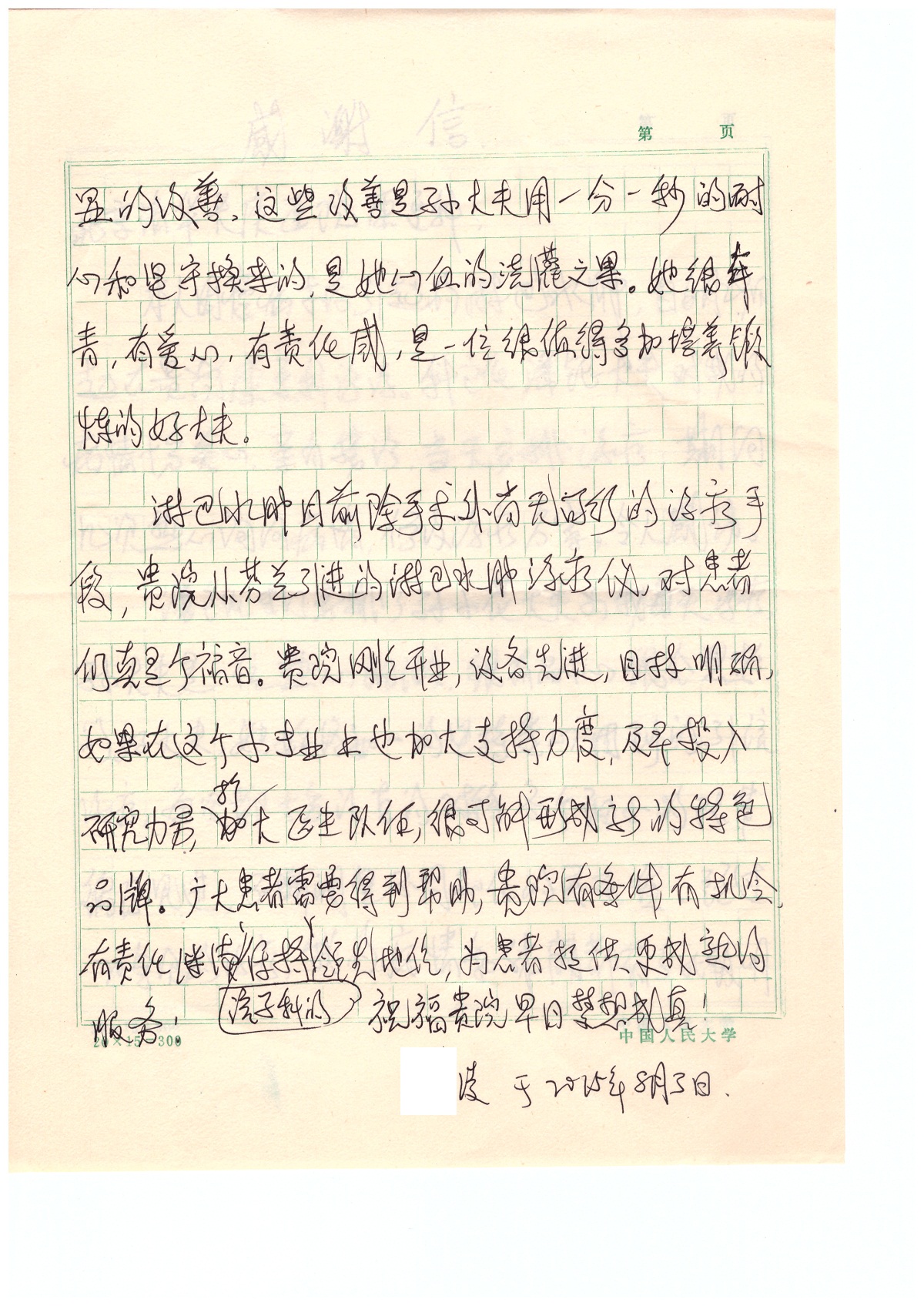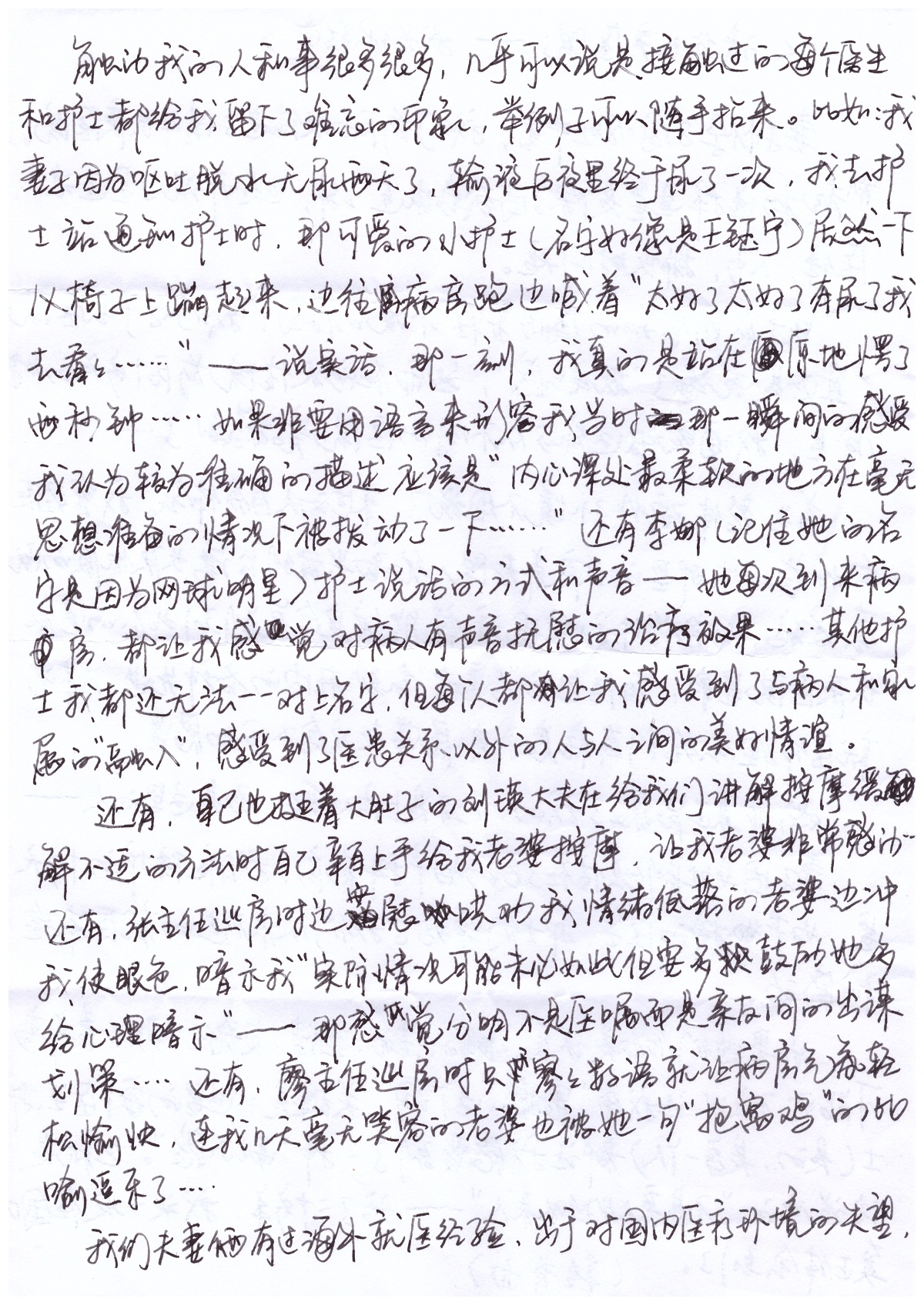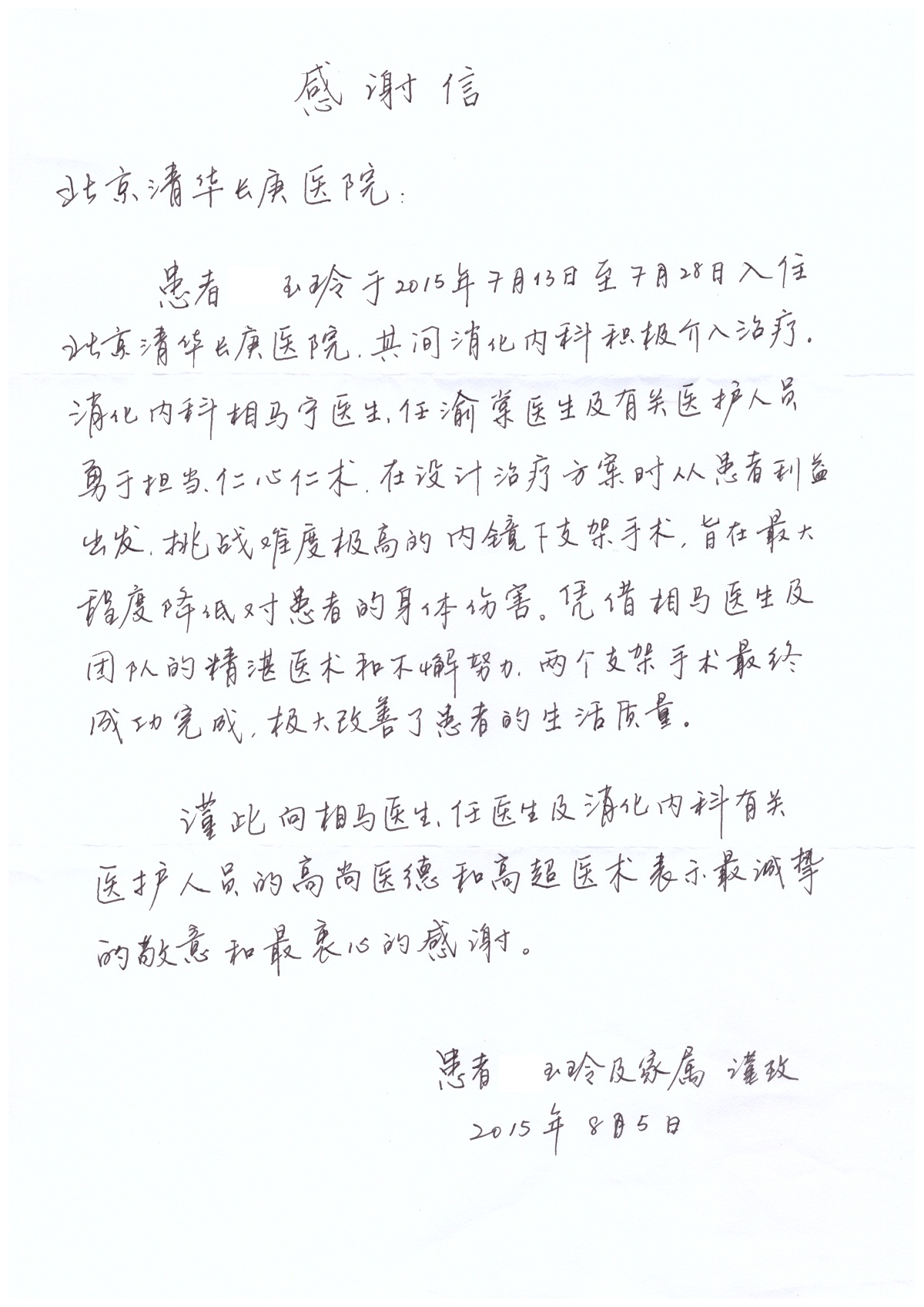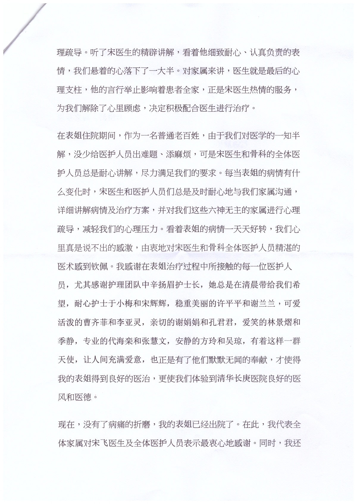 2015年8月,我院共接到患者及家属感谢信23封、锦旗4面,其中妇产科廖秦平主任、张蕾副主任医师、刘瑛医师,泌尿外科李建兴主任、张鑫副主任医师、魏义医师,神经外科王贵怀主任、杨世伟医师,肾脏内科李月红主任、王燕婴医师,消化内科相马宁主任医师、任渝棠医师,眼科胡运韬主任,儿科季丽娜副主任医师,心脏内科缪国斌副主任医师,普外科蔺宏伟副主任医师、孙孝文医师,骨科宋飞医师,ICU李灏医师,血液内科于凡医师,整形外科田金翌医师,康复医学科潘钰主任、萧演清医师、徐泉医师、陈固稳治疗师、孙小花治疗师、尹航治疗师、马春岳治疗师、李颜杝治疗师、屠媛媛治疗师,医事处陈佳欣,护理部王钰宁护师、李娜护师、辛扬眉护师、程美玲护师、侯多朵护师、孔君君护师、于小梅护师、宋辉辉护师、张慧文护师、方玲护师、吴琼护师、许平平护师、孙洁护士、齐甜甜护士、杨晓辉护士、李亚灵护士、覃丽妮护师、郝萍护士、田静静护士、荆红英护士、刘淼护士、谢兰兰护士、曹齐菲护士、李亚灵护士、谢娟娟护士、林景熠护士、季静护士、代海栾护士及ICU、6B、7A、7B病房全体护理人员收到具名表扬。特此公告,以资鼓励!