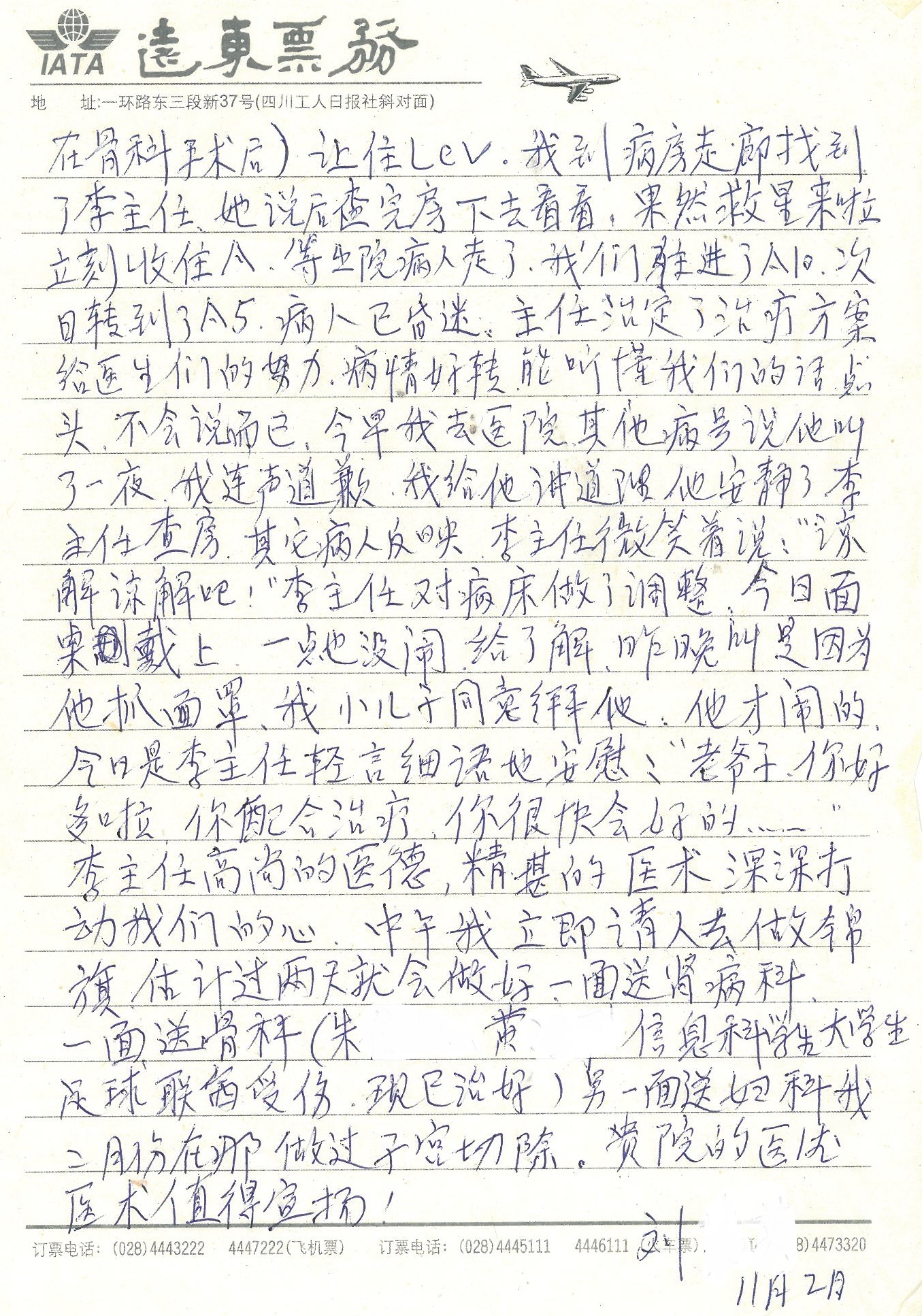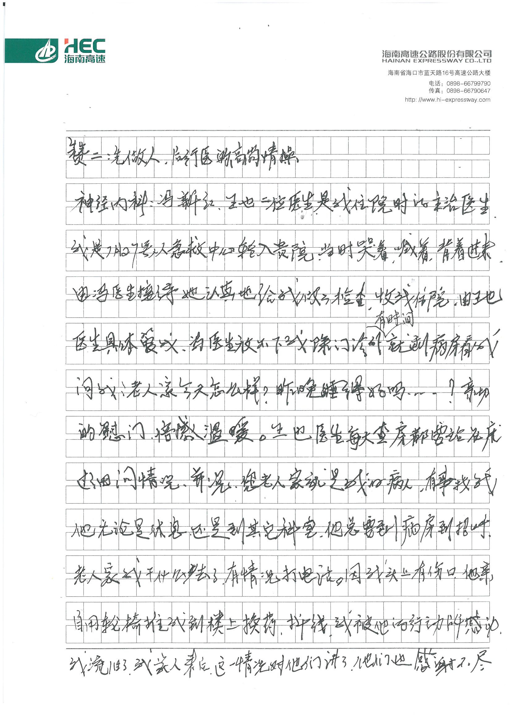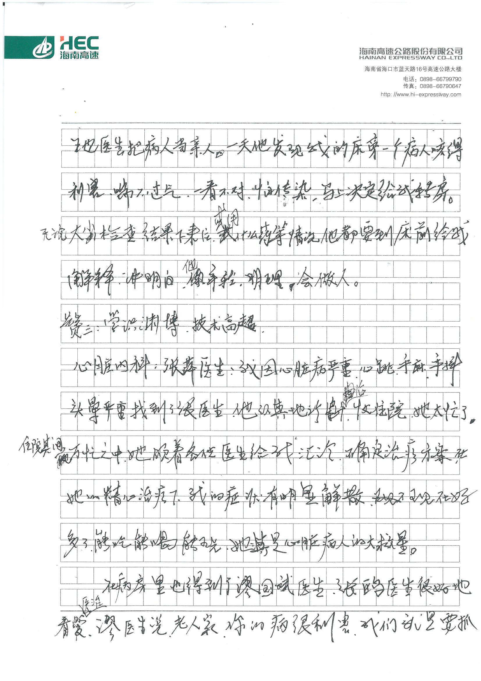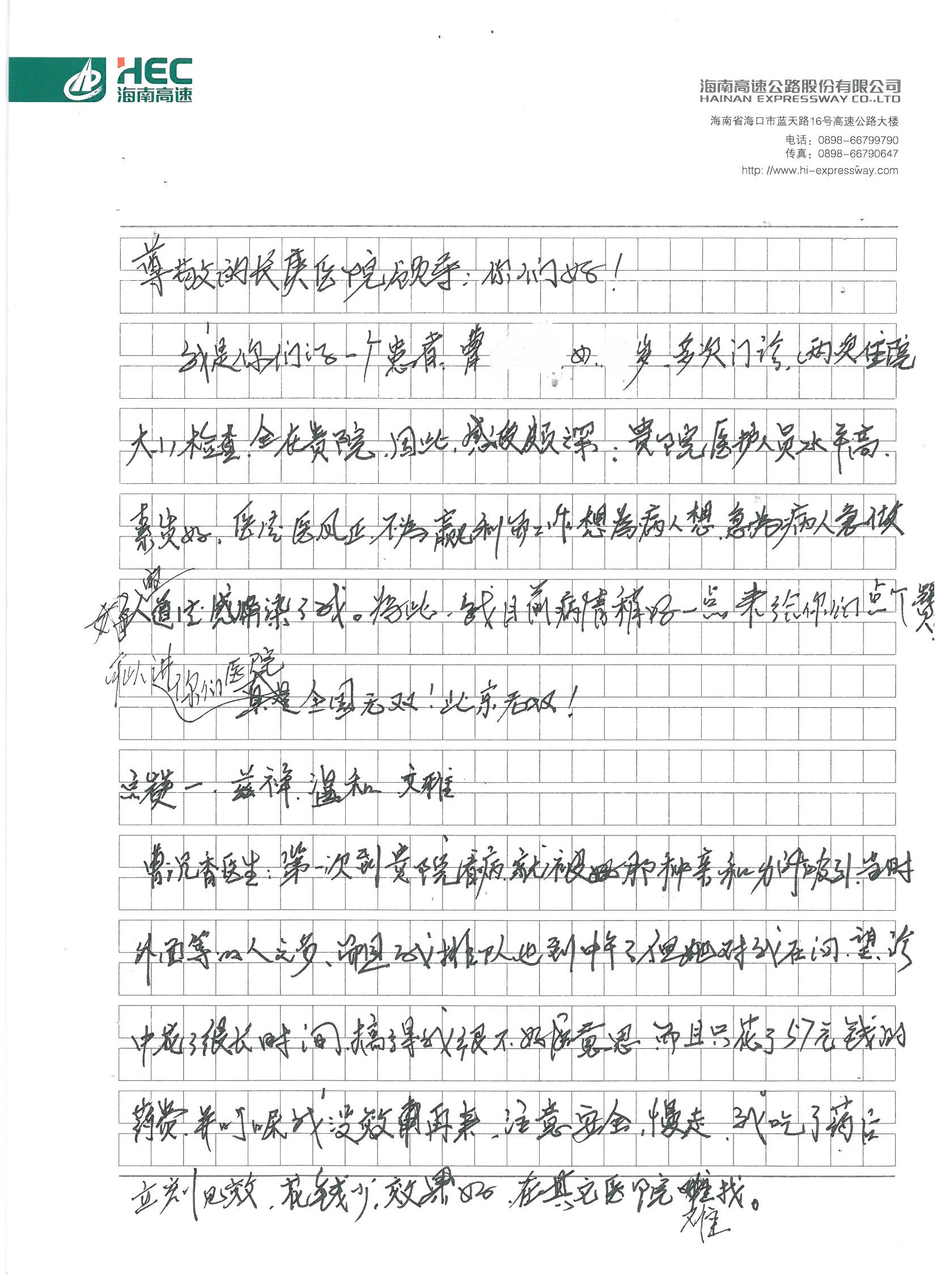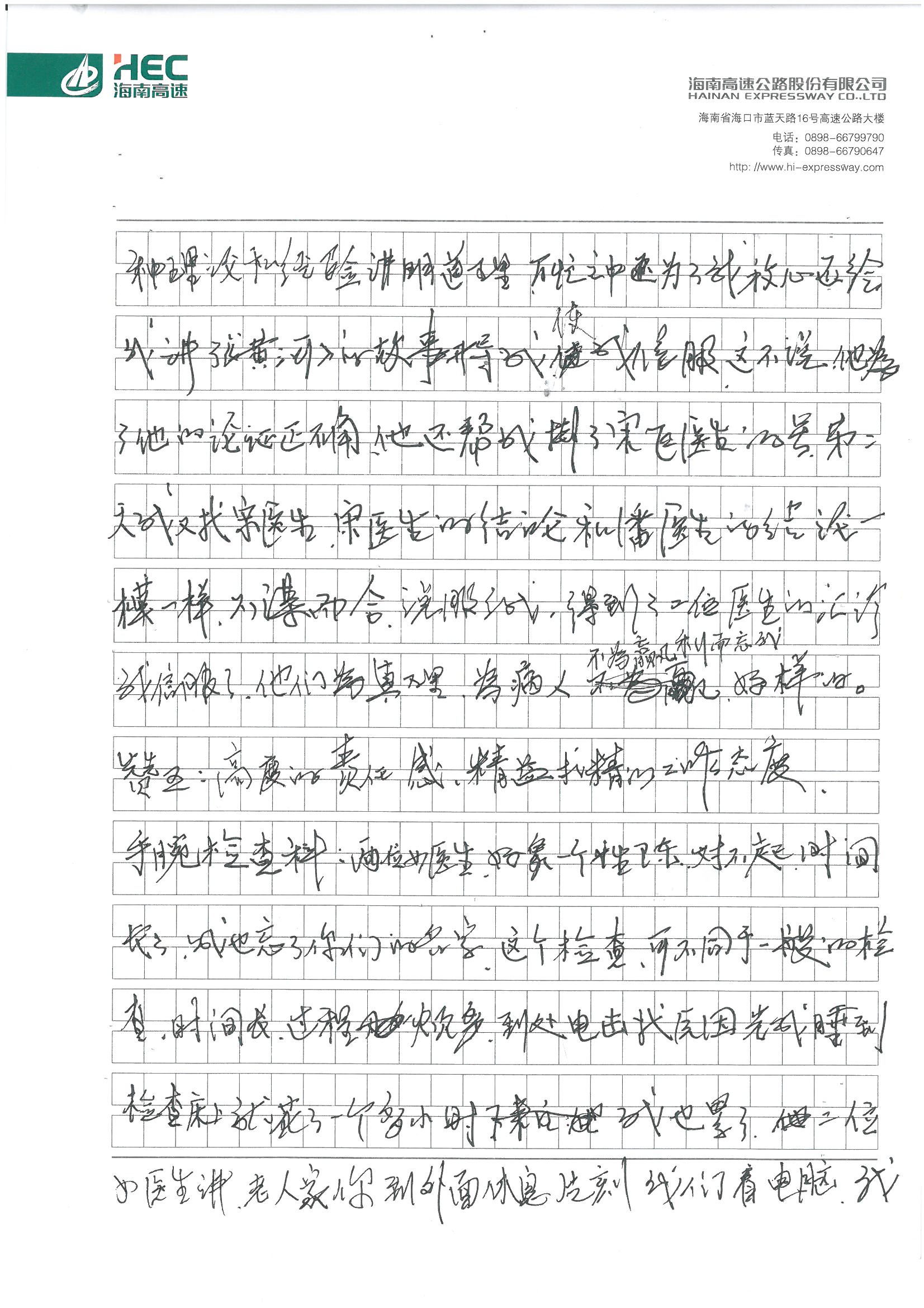 2015年11月,我院共接到患者及家属感谢信32封,其中肝胆胰外科董家鸿院长、曾建平主治医师、于里涵医师,神经外科王劲副院长、王贵怀主任、郭毅副主任医师、苏伟主治医师、杨峰医师,普通外科蔺宏伟副主任医师,骨科潘勇卫主任医师、蔡谞主任医师、陈连旭副主任医师、宋飞主治医师、付立功医师、蒋超医师,胸腔外科陈东红副主任医师、杨帆主治医师,泌尿外科李建兴主任、陈松副主任医师、胡卫国主治医师、王志顺医师,妇产科廖秦平主任、吕涛主治医师、马珂主治医师,耳鼻咽喉头颈外科叶京英主任、胡斌医师,心内科张萍主任、缪国斌副主任医师、佘飞副主任医师、薛亚军主治医师、王昊天医师、孙玉杰医师、张鸥医师,肾内科李月红主任,神经内科冯新红主治医师、李秀丽医师、王也医师,内分泌与代谢科曹沉香主治医师,住院中心刘静雅、刘嘉然、刘梦,社会服务办公室赵晓兰,保洁人员王俊连,护理部王莹、蔡敏丽、李怡然、王真真、李慧、卜卉、张翠翠、许丽丽、张会芳、杨静、荆红英、张春红、谢兰兰、谢娟娟、于小梅、许平平、张慧文、曹奇菲、方玲、李亚灵、辛扬眉、孔君君、王沫竹、代海栾、季静、袁雪丽护理人员及骨科、肝胆胰外科、神经外科、妇产科、耳鼻咽喉头颈外科、血管外科、泌尿外科全体医护人员收到具名表扬。