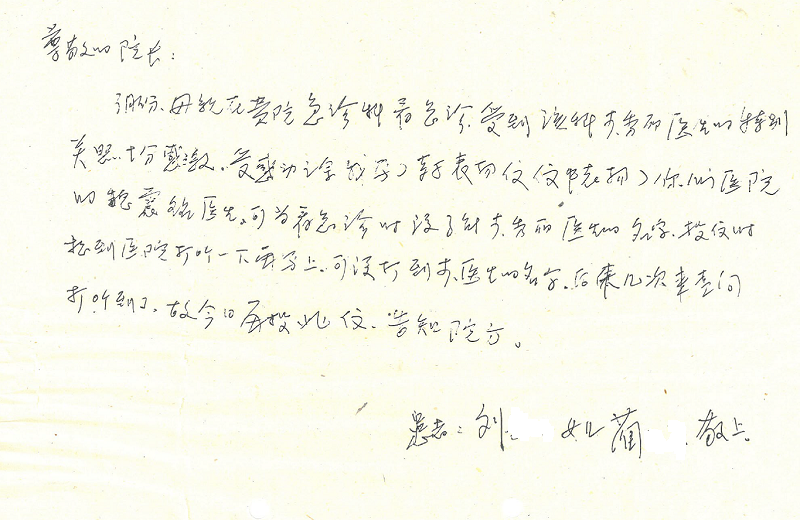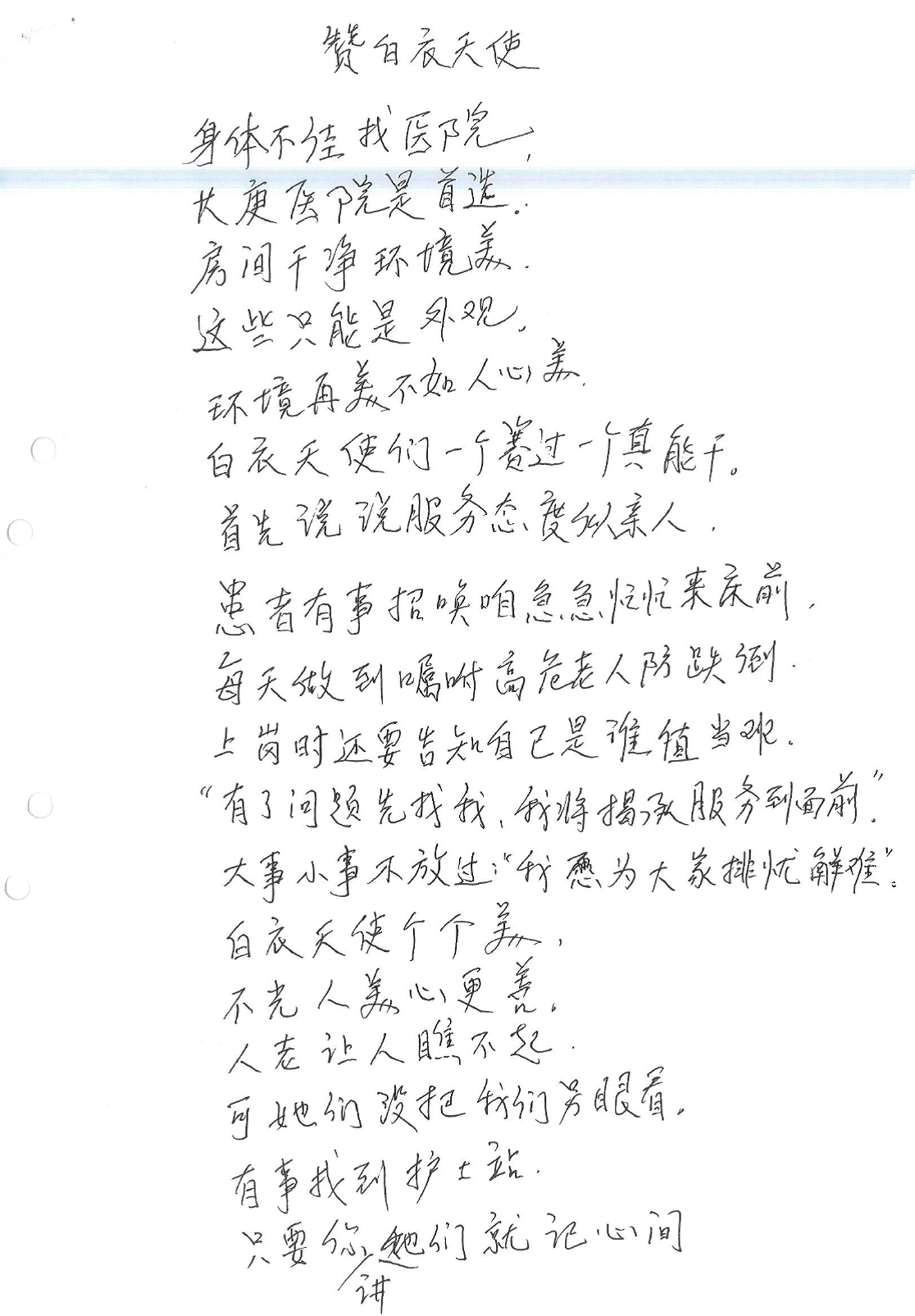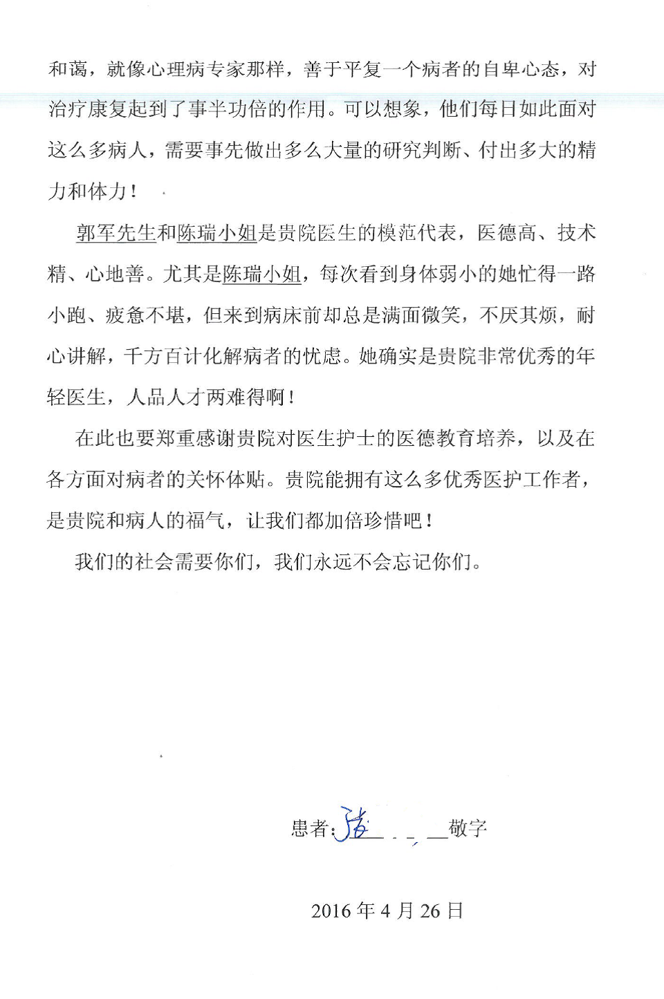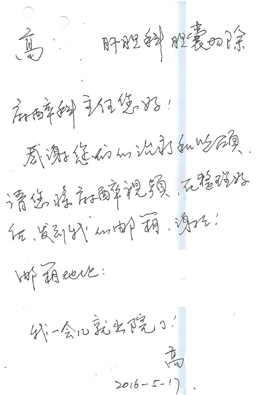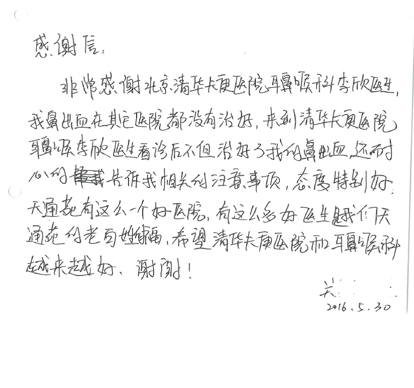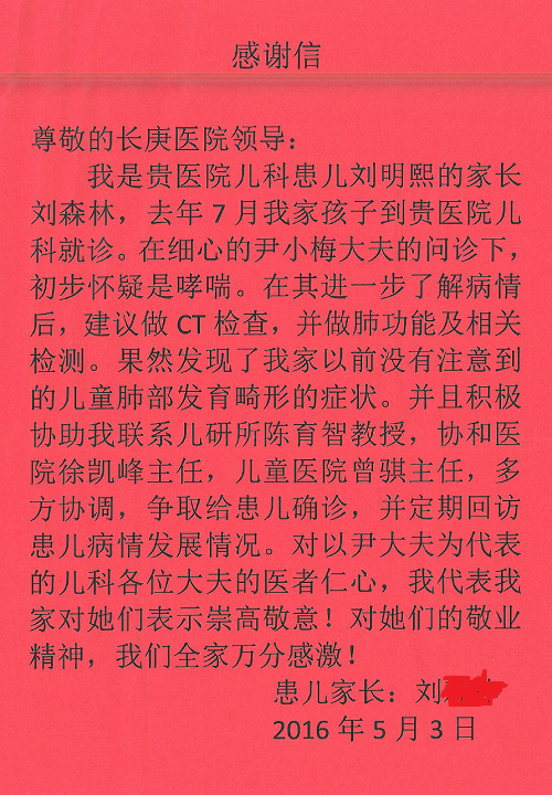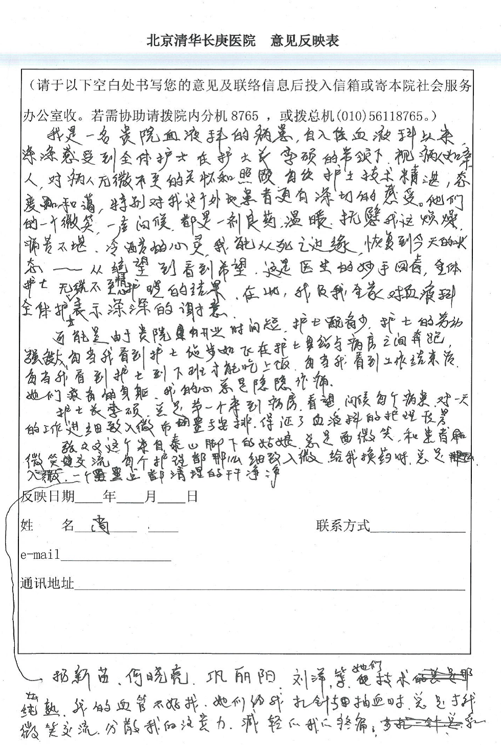 2016年5月,我院共接到患者及家属感谢信51封,其中肝胆胰外科董家鸿主任医师、石军副主任医师、王良医师、杨世伟医师,神经外科苏伟主治医师,普通外科罗斌主任医师、刘伯涛主治医师、刘安阳医师,整形外科张家宁主任医师、李薇薇副主任医师,骨科肖嵩华主任医师、潘勇卫主任医师、蔡谞主任医师、宋飞主治医师、何大炜医师、蒋超医师,泌尿外科李建兴主任医师、陈松副主任医师、张鑫副主任医师、胡卫国副主任医师、肖博主治医师、苏贵锋医师,麻醉科张欢主任医师,心脏内科张萍主任医师、缪国斌副主任医师、佘飞副主任医师、葛堪忆主任医师、何榕副主任医师、薛亚军主治医师、王昊天医师、杨靖医师、段敏医师、周杰医师、郭晓娟医师、郭文佳医师、陈瑞医师、葛婷婷医师,呼吸内科王立万副主任医师、郭军主治医师、张会娟医师、陈瑞医师,神经内科武剑主任医师,肾脏内科李月红主任医师、沈文光主任医师、庄震主治医师、李敏侠主治医师、吕佳璇医师,普通内科丁磊副主任医师,消化内科王佳主治医师,儿科李然主治医师、尹小梅主治医师,康复医学科潘钰主任医师、徐泉医师、孙小花、马春岳、李颜杝、尹航、朱殊丽、杨晓辉、马丽娜、付莉莉,内分泌科肖建中主任医师,眼科胡运韬主任医师、司山成医师、张茵茜医师,耳鼻咽喉-头颈外科李欣副主任医师,急诊科王也医师、李秀丽医师,ICU谢志毅副主任医师,超声科谢霞医师,药剂科凌桂红,医事处王莉,医政组赵晓兰,护理部史文丽、赵雪莲、黄帅、杨静、王珍、樊景春、张学爽、杨丽、王沫竹、林景熠、郑楠、刘晶钰、张保乾、李晶晶、寇静宜、张雅绯、于小梅、辛扬眉、吴琼、季静、代海栾、杨旭来、范桂芳、李亚灵、张慧文、郑爽、刘宇琛、曹奇菲、谢娟娟、谢兰兰、宋辉辉、郭莹莹、于洋洋、李伟伟、张亚菲、王莹、曹莉萍、曹艳飞、于小梅、蔡敏丽、贾波、吴雪洁、李梦雅、武军印、王英华、刘思彤、张莎、齐甜甜、钱月、位莎、张东敬、汪海燕、拓盼盼、刘翚、赵焕、张立玲、郭绥绥、陈红婷、白俊、李硕、张文文、杨新苗、何晓亮、巩丽阳、刘洋、李文静、杨晓辉以及普通外科、耳鼻喉科全体医护人员、8A病房全体医护人员、7B病房全体医护人员、6A病房全体护理人员收到具名表扬。特此公告,以资鼓励!