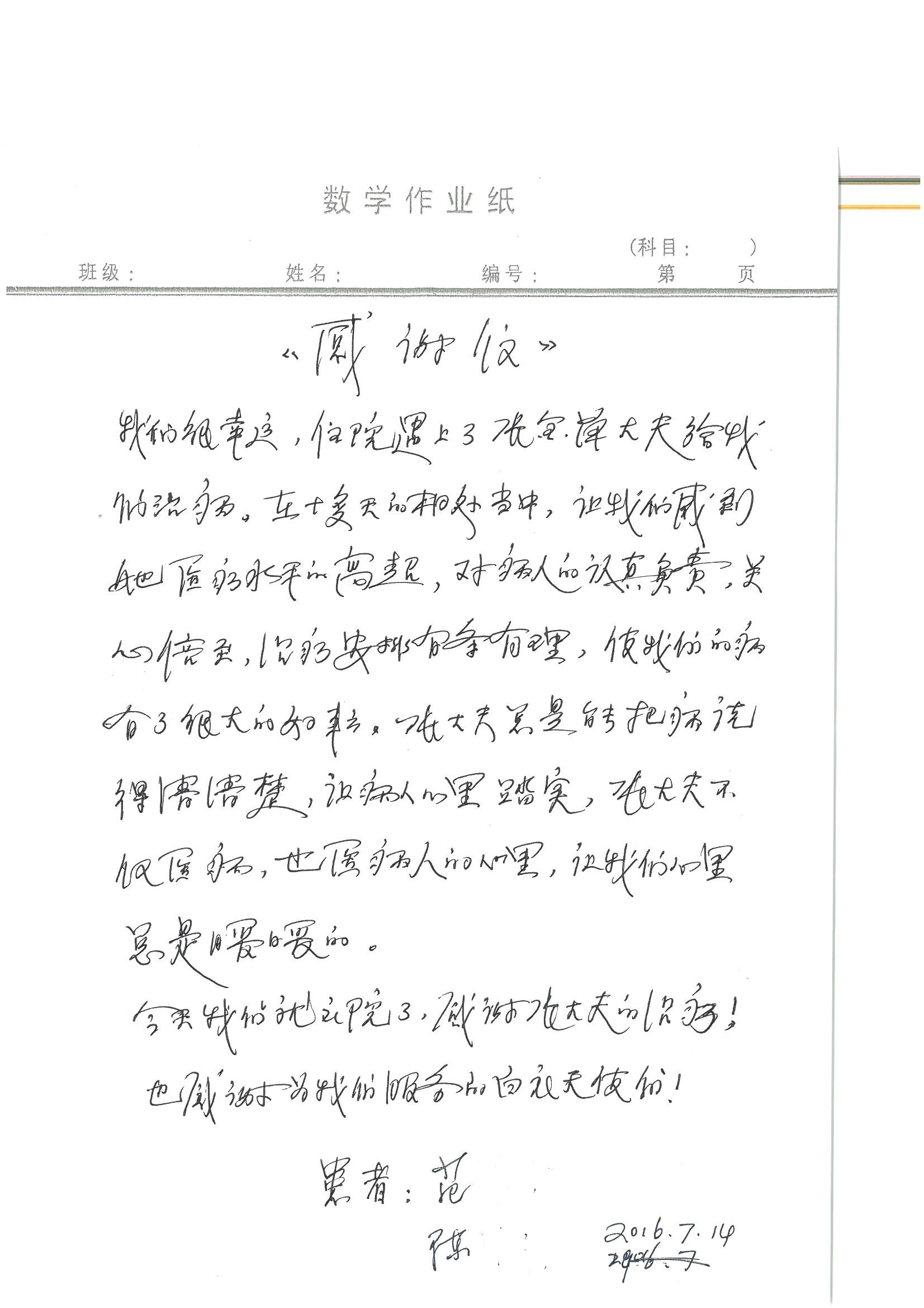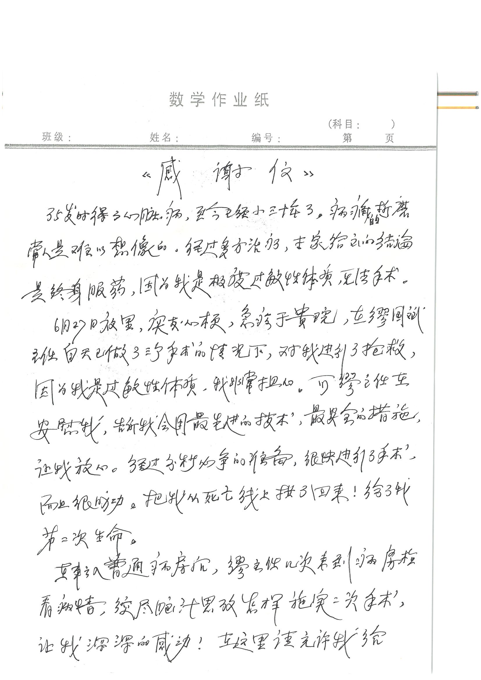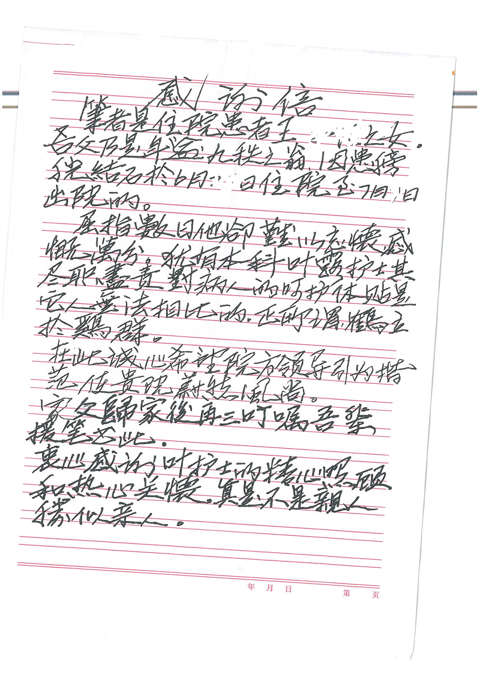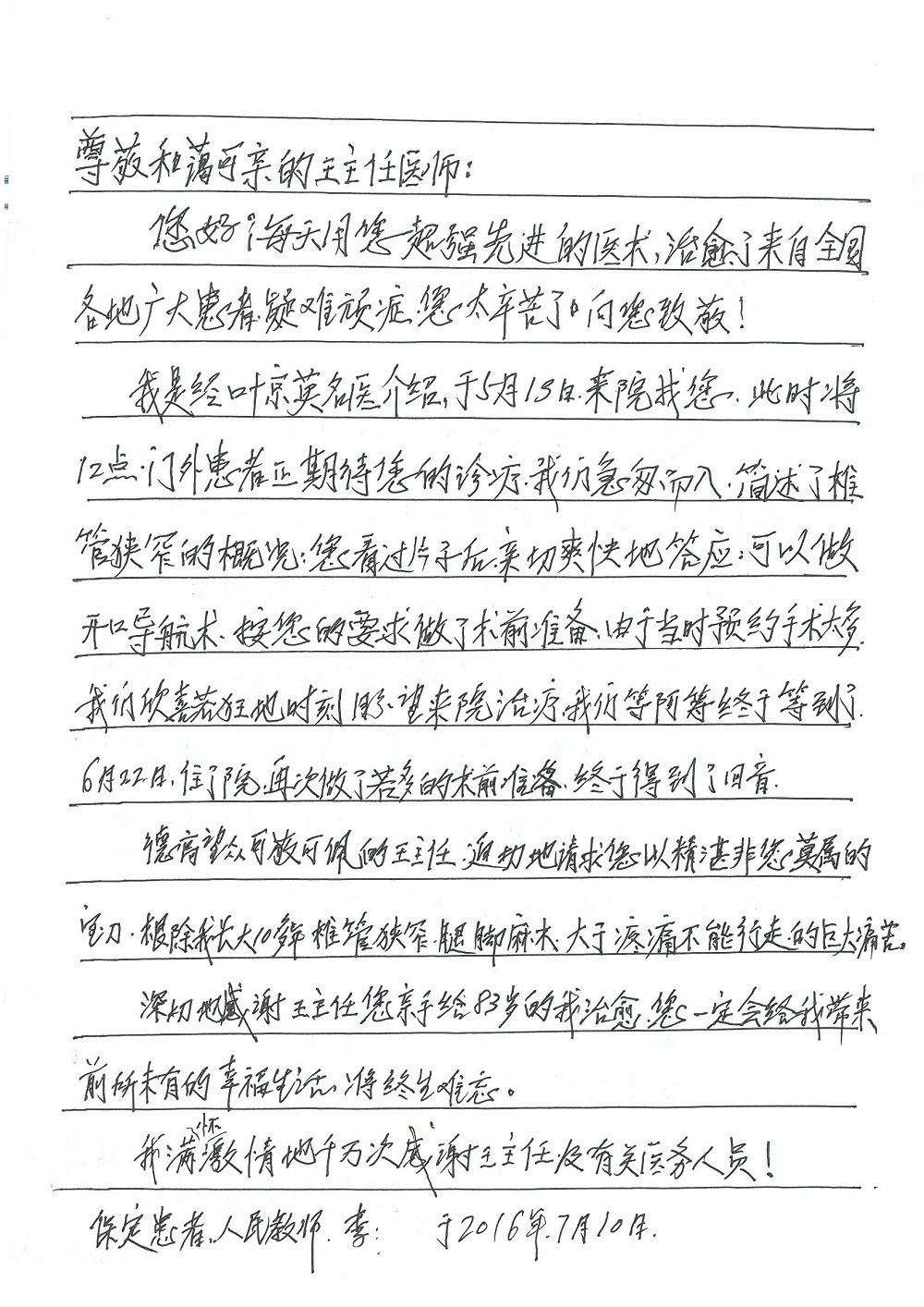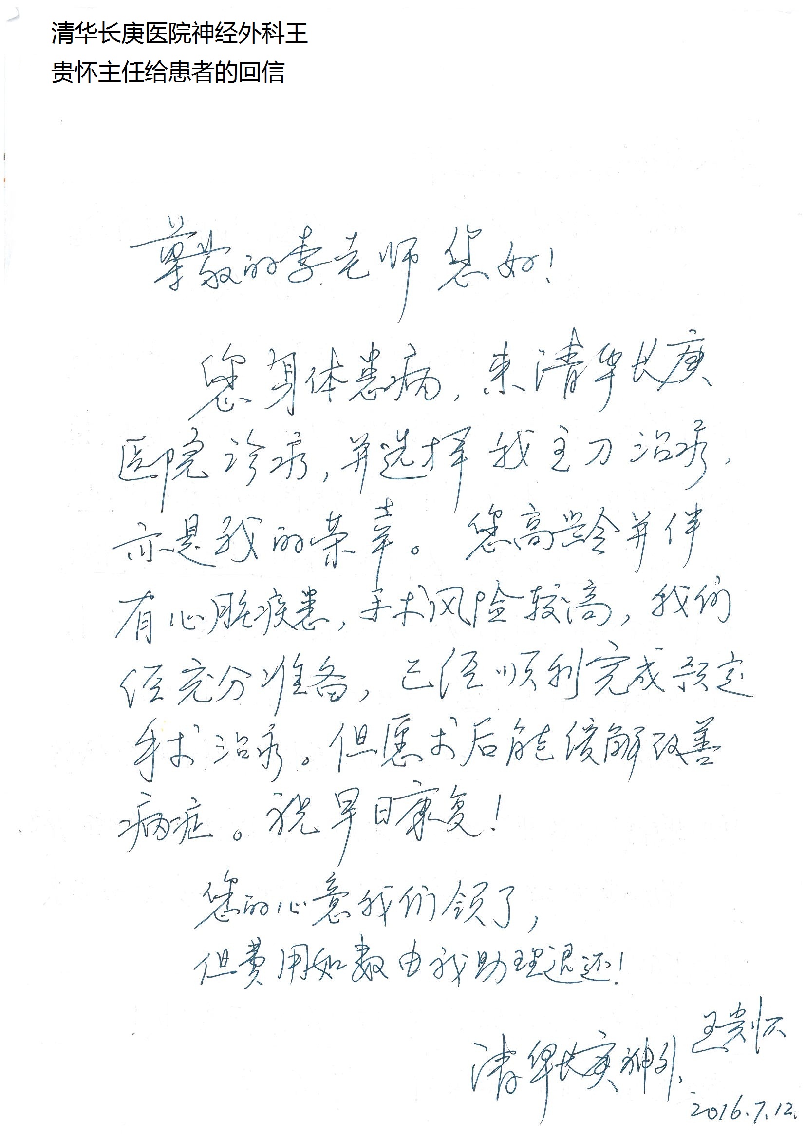 2016年7月,我院共接到患者及家属感谢信44封,其中神经外科王贵怀主任医师,普通外科刘伯涛主治医师,骨科肖嵩华主任医师、陈连旭副主任医师、宋飞主治医师、何大炜医师,血管外科吴巍巍副主任医师、赵克强主治医师、曹战江医师、赵俊来医师,泌尿外科李建兴主任医师、陈松副主任医师、胡卫国副主任医师、刘宇保医师,胸腔外科陈东红副主任医师、杨帆主治医师、朱伟鹏医师,麻醉科张欢主任医师、刘芳主治医师,心脏内科张萍主任医师、缪国斌副主任医师、薛亚军主治医师、张金萍主治医师、李海斌主治医师、张鸥医师、王科医师、张维康医师,呼吸内科王立万副主任医师、蔡存良主治医师、郭军主治医师、安宇林医师,神经内科刘效风医师,普通内科陈旭岩主任医师、冯莉莉主治医师、李妮医师,消化内科姜泊主任医师、相马宁主任医师、王佳主治医师、刘佳文主治医师、丁杰医师,妇产科张蕾副主任医师、黄振宇副主任医师、吕涛主治医师、杨曦主治医师,眼科胡运韬主任医师、刘瑄副主任医师、司山成医师,耳鼻喉科伊海金副主任医师、顼晋昆主治医师、许嘉医师,急诊科谢医生,放射科高雅旭,医事处张蕊、范丹梅,保卫处潘荣欢、许广辉、姚旭,护理部吴爽、武洪玥、王秋惠、张传云、朱浩、陈艳平、孟婷、魏月秀、周倩倩、尹雪、刘晶钰、许平平、杨旭东、叶露、张丽、张东敬、刘娅、汪爱华、刘福兰、孙蕾蕾、刘洋、吴婧倩、谢兰兰、谢娟娟、郑爽、邓聪、刘帅、侯多朵、胡春红以及心脏内科、急诊科、重症医学科全体医护人员,消化内科、7B病房、5A病房全体护理人员收到具名表扬。特此公告,以资鼓励!