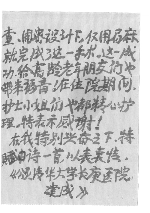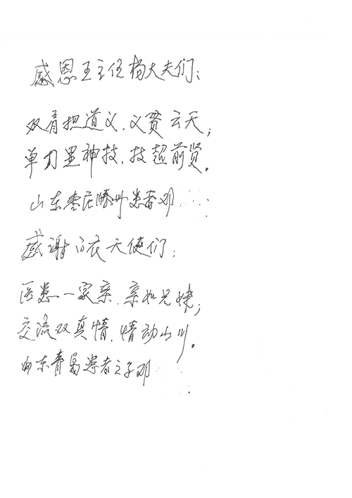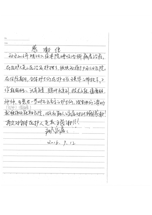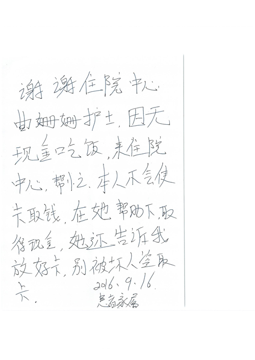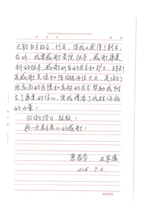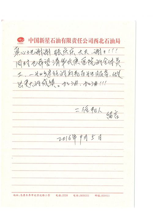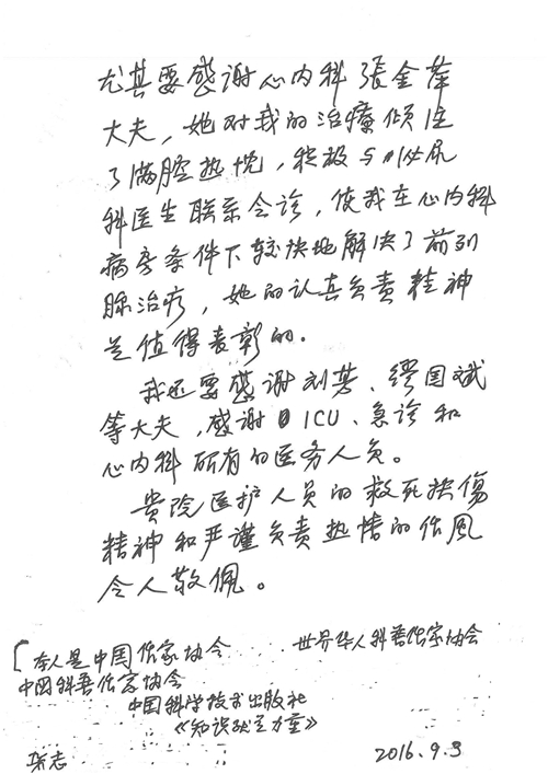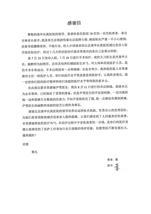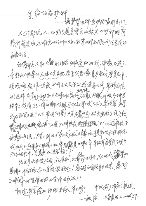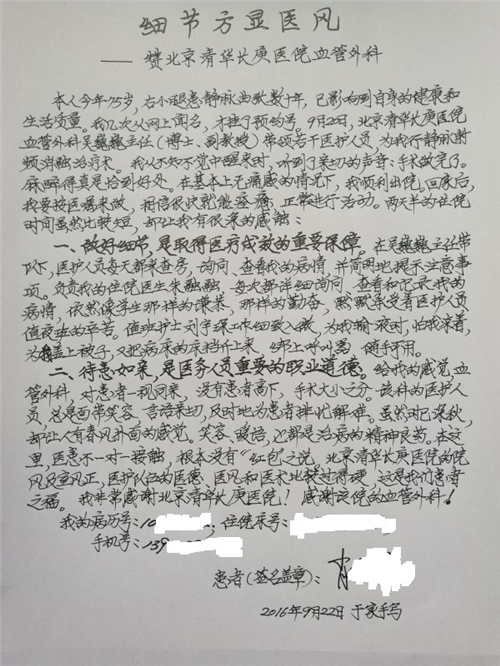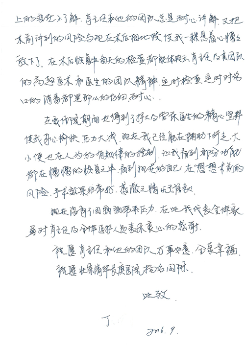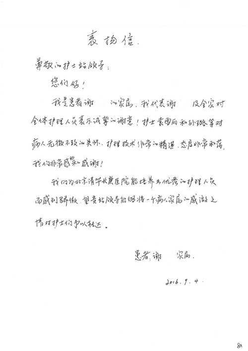 2016年9月,我院共接到患者及家属感谢信61封,其中肝胆外科董家鸿主任医师、项灿宏副主任医师、曾建平主治医师、公磊医师、王良医师,神经外科王贵怀主任医师、苏伟主治医师、李伟医师、杨世伟医师,普通外科罗斌主任医师、李元新主任医师、张鹏主治医师、陈强医师,骨科肖嵩华主任医师、何大炜医师,血管外科吴巍巍副主任医师、朱融融医师,泌尿外科胡卫国副主任医师,麻醉科赵艳军主治医师,心脏内科张萍主任医师、缪国斌主任医师、刘芳副主任医师、何榕副主任医师、张金萍医师、王昊天医师,神经内科冯新红主治医师、杨亭亭医师、王也医师,肾脏内科李月红主任医师、王炜主治医师、庄震主治医师、李敏侠主治医师、吕佳璇医师、温雯医师,消化内科相马宁主任医师、刘佳文主治医师、王佳主治医师,血液内科于凡主治医师,妇产科廖秦平主任医师、黄振宇副主任医师、赵秀莲副主任医师、刘晨副主任医师、吕涛主治医师、罗恋梅主治医师、马珂主治医师、陈瑞医师、王晓茜医师、文佳医师、王奔医师,康复科吴琼医师、陈固稳,内分泌科肖建中主任医师、曹沉香主治医师、吴琛医师,中医科刘承主治医师,ICU谢志毅副主任医师,医事处陈秀杰、沈晓梅、刘艳凤、李俊男,医政组张立东、赵晓兰,护理部赵萌、赵雪莲、杨静、黄帅、王宇、张丽妮、姜学爽、田静静、李红霞、樊景春、常里里、张丽娜、刘淼、李建华、李亚灵、方玲、张慧文、谢兰兰、许平平、曹奇菲、杜双双、袁雪丽、孙璐、申姗、周圆、田迎迎、王子秋、王英华、曾朋、刘帅、何亚惠、张庆庆、宋辉辉、袁雪、潘晓婷、史玉静、尹雪、曲姗姗、王颖莹、杨旭东、张慧、张坤、刘宇琛、辛扬眉、季静、郭莹莹、李冰、代海栾、郭婧倩、于洋洋、黄婧倩、苑贵芳、郑爽、赵金力以及肝胆外科、ICU、急诊科、心脏内科、妇产科、骨科、血液内科、肾脏内科、血透室、儿科、5A全体医护人员,呼吸内科、门诊治疗室、8A全体护理人员收到具名表扬。特此公告,以资鼓励!