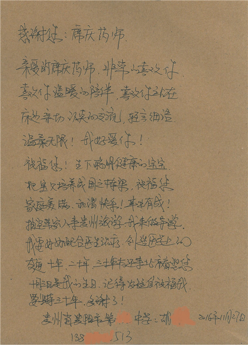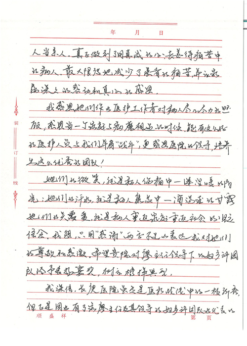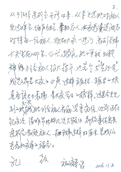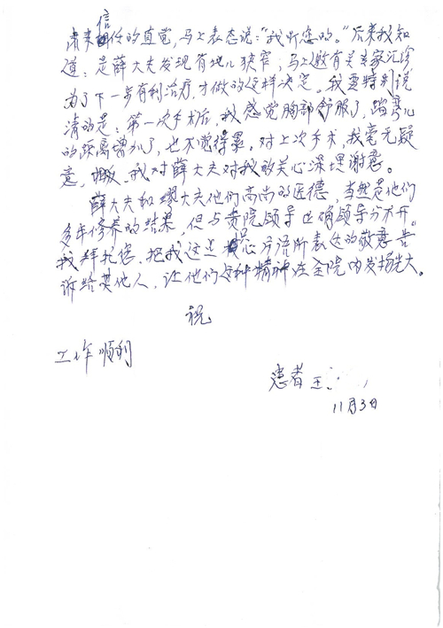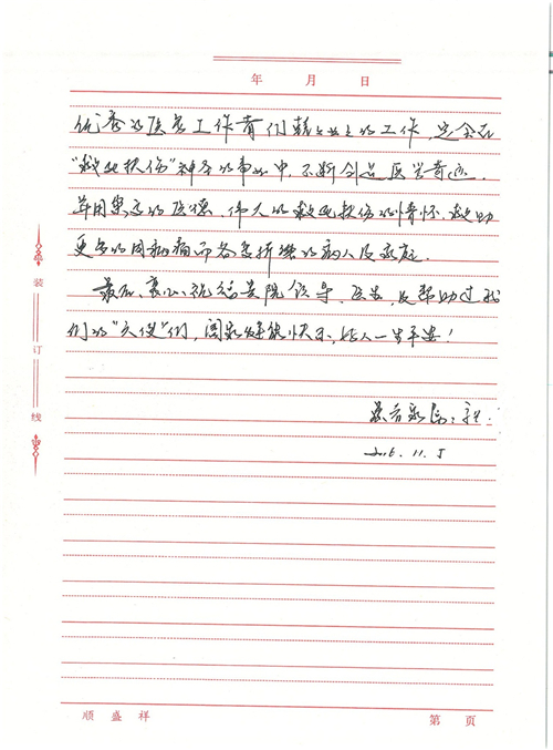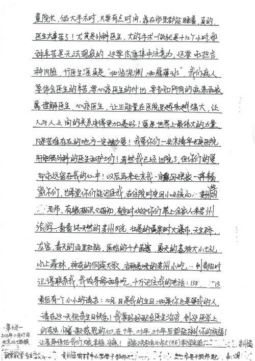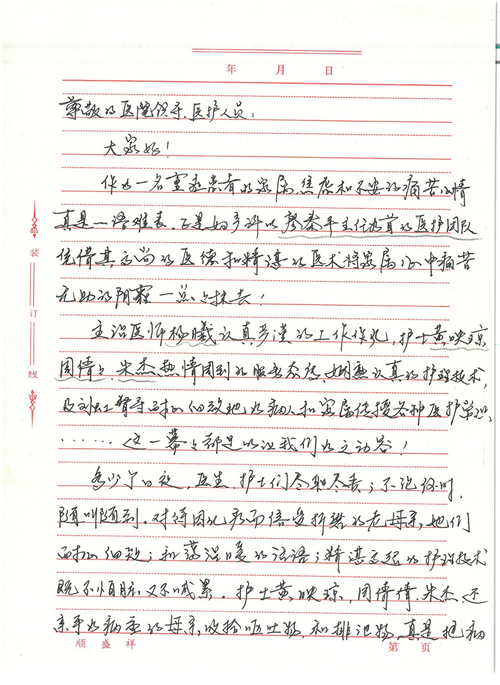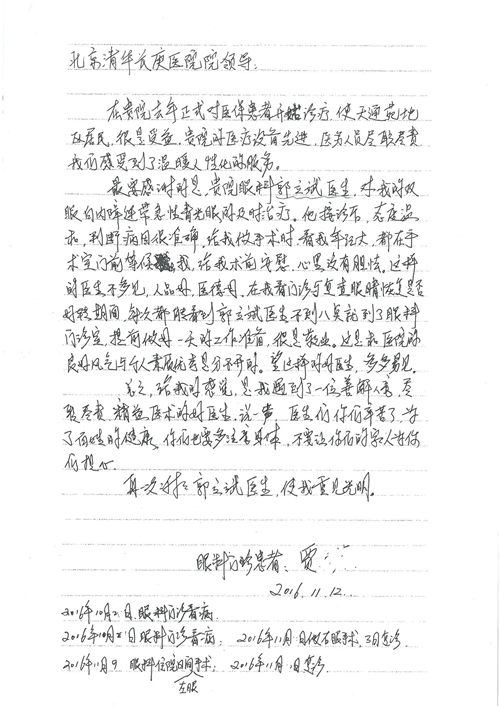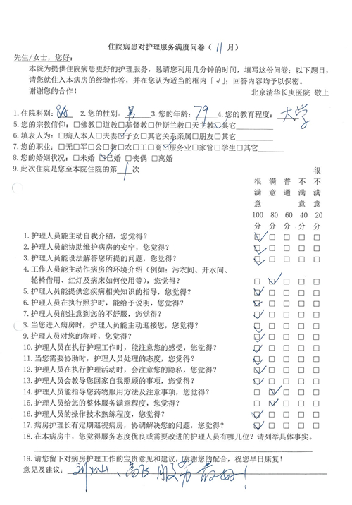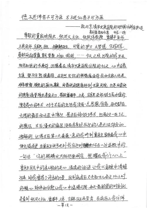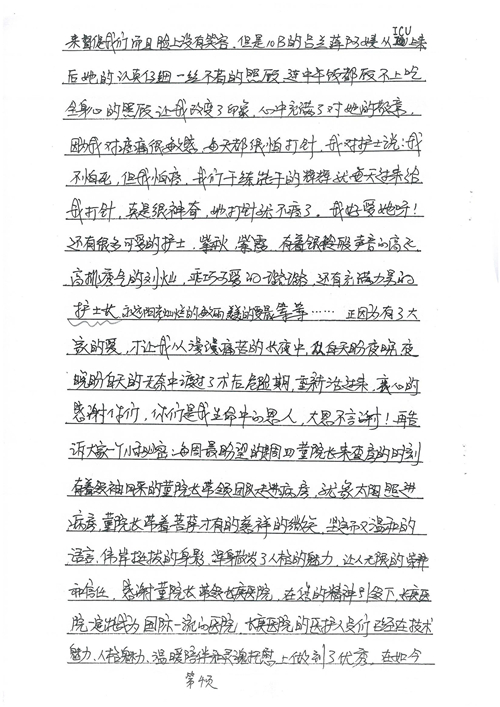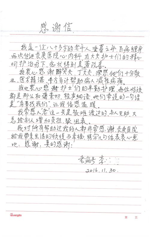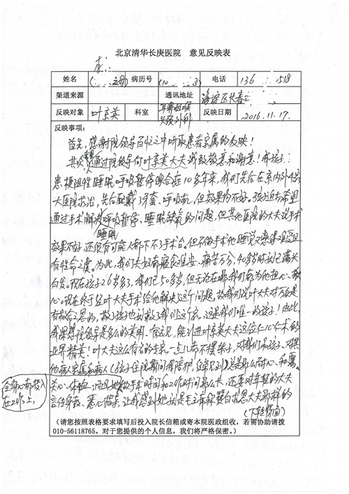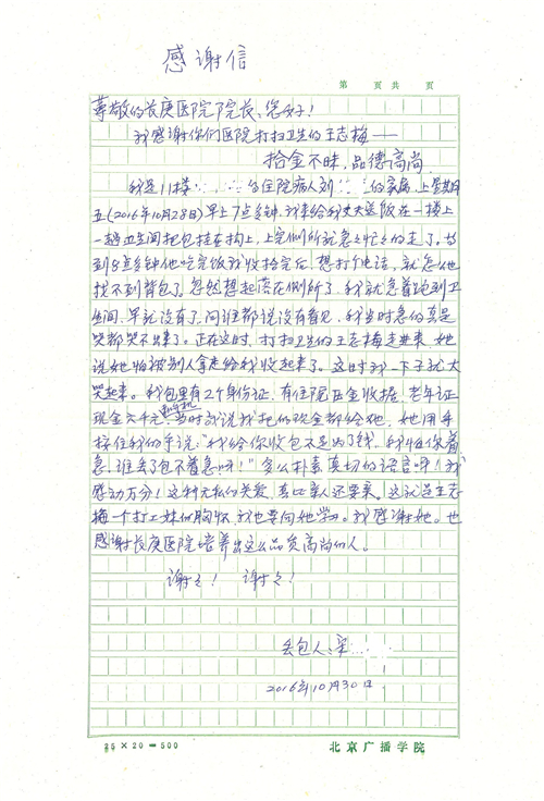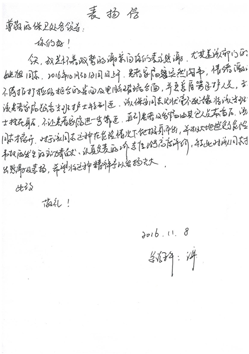 2016年11月,我院共接到患者及家属感谢信64封,其中肝胆外科董家鸿主任医师、张洪义主任医师、张跃伟主任医师、韩东冬副主任医师、曾建平主治医师、王良主治医师、庄卓男医师、朱融融医师,神经外科王贵怀主任医师、郭毅副主任医师、师炜医师,普通外科李元新主任医师、蔺宏伟副主任医师、刘伯涛主治医师、张鹏主治医师,骨科潘勇卫主任医师、蔡谞主任医师、赵喆主治医师、何大炜医师、朱剑津医师,泌尿外科陈松副主任医师,心脏外科沈冬焱副主任医师,麻醉科张欢主任医师、高元朝主治医师,心脏内科缪国斌主任医师、佘飞副主任医师、刘芳副主任医师、薛亚军主治医师、丁洁医师、葛婷婷进修生,神经内科王也医师、黄镪进修生,肾脏内科王炜主治医师,消化内科姜泊主任医师、任渝棠主治医师、王佳主治医师、李思源进修生,血液及肿瘤内科于凡主治医师、李墨丹医师,妇产科黄振宇副主任医师、马珂主治医师、杨曦主治医师、王奔医师、刘瑛医师、陈华云医师、王晓茜医师,儿科季丽娜副主任医师、尹小梅主治医师、李然主治医师,康复科潘钰主任医师、徐泉主治医师、孙小花、杨晓辉、马春岳,皮肤科赵邑副主任医师、段晓涵主治医师,眼科胡运韬主任医师、郭立斌副主任医师,耳鼻咽喉头颈外科叶京英主任医师、李欣副主任医师、尹国平主治医师、曲玥医师、许嘉医师,ICU孙雪医师,放射科马永强主治医师,放疗科蒋静主治医师,检验科樊淼,临床药学科席庆、张微微,医事科李俊男、张勇涛,警卫科姚旭,保洁员汪志霞、王志梅,护理部白俊、王璐、王梦瑶、宋辉辉、蔡敏丽、高飞、刘紫霞、王紫秋、贾晨、刘灿、孙璐、刘璐、于晓梅、曹莉萍、周小懿、杨敏、申姗、李晶晶、李伟伟、荆红英、张保乾、张雅绯、吴雪洁、曹艳飞、刘岩、胡荫、杨莉、刘宇宝、黄映琼、周倩倩、朱杰、崔润喆、韩建新、梁淑一、魏月秀、李伟伟、周圆、刘金霞、田迎迎、李亚灵、谢兰兰、赵宝晶、曹奇菲、张慧文、王许佳以及廖秦平医护团队、蔡谞医护团队、张传云护士团队、郑楠护士团队,血液及肿瘤内科、心脏外科、消化内科、普通外科、神经外科、泌尿外科、放射科全体医护人员收到具名表扬。特此公告,以资鼓励!
