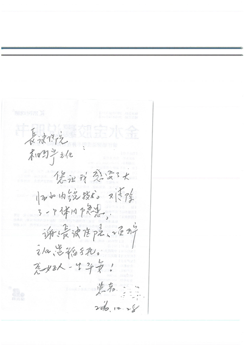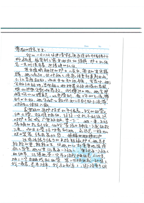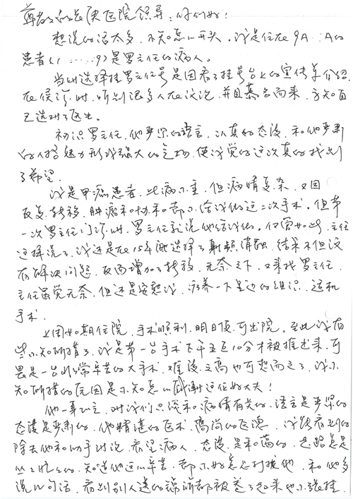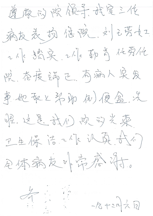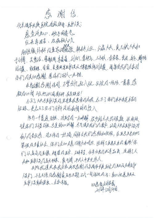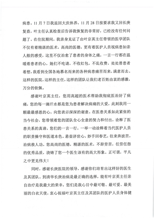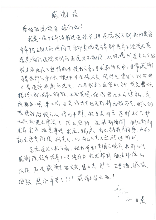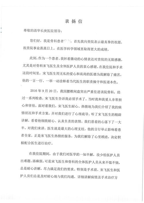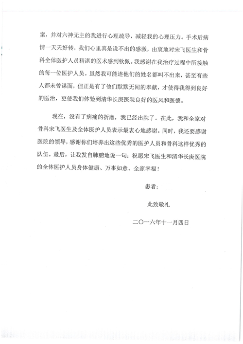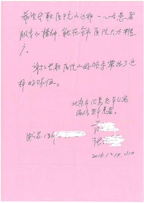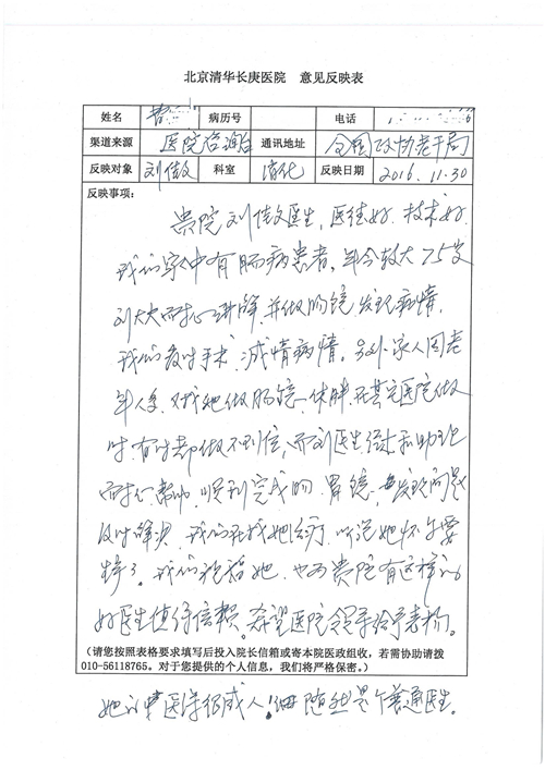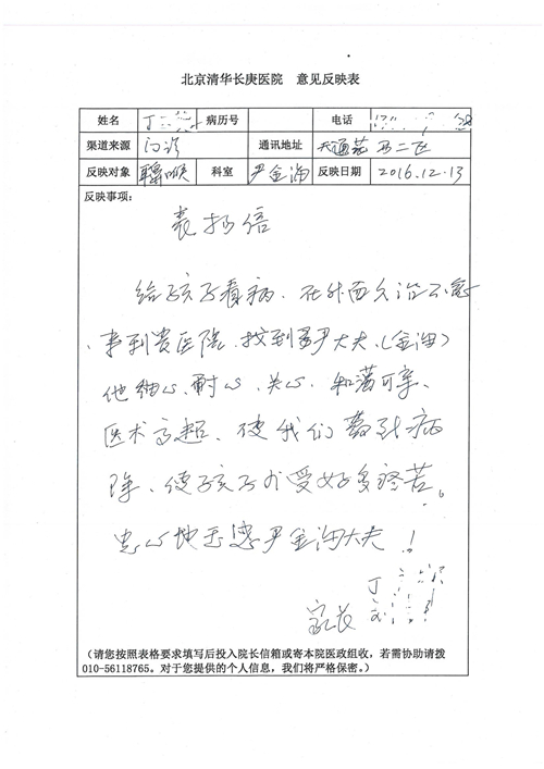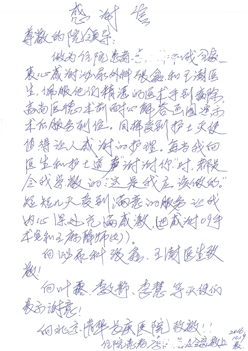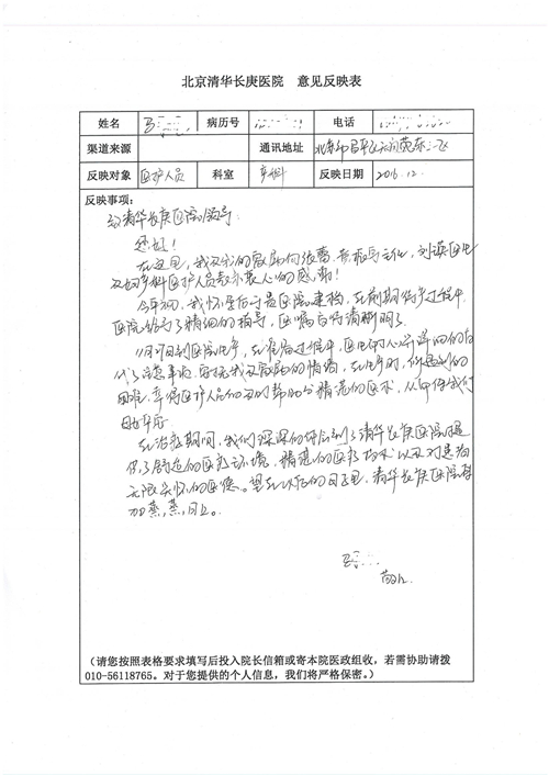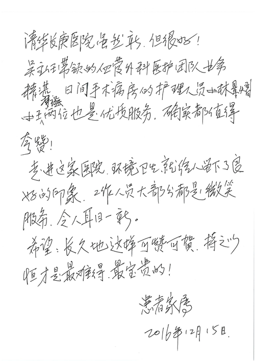 2016年12月,我院共接到患者及家属感谢信81封,其中肝胆外科董家鸿主任医师、张洪义主任医师、张跃伟主任医师、石军副主任医师、韩东冬副主任医师、项灿宏副主任医师、公磊医师、杨世伟医师、汤睿医师、李昂医师、袁玉斌医师,普通外科罗斌主任医师、李元新主任医师、刘伯涛主治医师、白熠州主治医师、汤洁莹医师、赵传多医师、朱融融医师,骨科肖嵩华主任医师、宋飞主治医师、杨华东主治医师、顾苏熙主治医师,泌尿外科张鑫副主任医师、王澍医师,心脏内科张萍主任医师、缪国斌主任医师、薛亚军主治医师,肾脏内科李月红主任医师、庄震主治医师,消化内科相马宁主任医师、刘佳文主治医师,血液及肿瘤内科刘兆祥住院医师,妇产科黄振宇副主任医师、张蕾副主任医师、马珂副主任医师、刘晨副主任医师、刘瑛医师、王奔医师、王晓茜医师,儿科季丽娜副主任医师,内分泌科蓸沉香主治医师,眼科胡胡运韬主任医师、郭立斌副主任医师、司山成医师,耳鼻咽喉头颈外科叶京英主任医师、伊海金副主任医师、尹国平主治医师,急诊科周杰医师,ICU许媛主任医师,医事处李俊男,保卫处马班长,保洁员刘玉芳,护理部袁雪丽、吴雪洁、李伟伟、孙璐、蔡敏丽、李晶晶、秦蒙蒙、于小梅、张雅绯、周圆、王子秋、刘子霞、贾波、高飞、曹艳飞、田迎迎、甄娇、王嘉琦、申姗、李晶晶、宋辉辉、荆红英、张保乾、刘灿、杨钰琢、贾晨、高雅、曹莉萍、戚欣、刘金霞、曹明霞、杨旭东、叶露、李文静、李慧、林景熠、王梦瑶、许丽、杨秀玉、徐洋洋、许平平、谢娟娟、谢兰兰、季静、郭莹莹、代海栾、苑贵芳、杜双双、李亚灵、张慧文、方玲、于洋洋、黄婧倩、刘宇琛、李冰、赵金立、刘天玉、杨凯、赵宝晶、张晓岚、刘盼、陈晓红、赵杰、王宇、赵金立、郑楠、刘晶钰、姚惠云、许乐、周小懿、郑爽、李杰、李双双、姜欣悦、潘景娜、张东鑫、李梦莹、宋研研、范李璐以及缪国斌医护团队,心脏内科、骨科、血管外科、肝胆外科、妇产科、ICU、肾脏内科全体医护人员,6B、9A、普通外科全体护士收到具名表扬。特此公告,以资鼓励!
