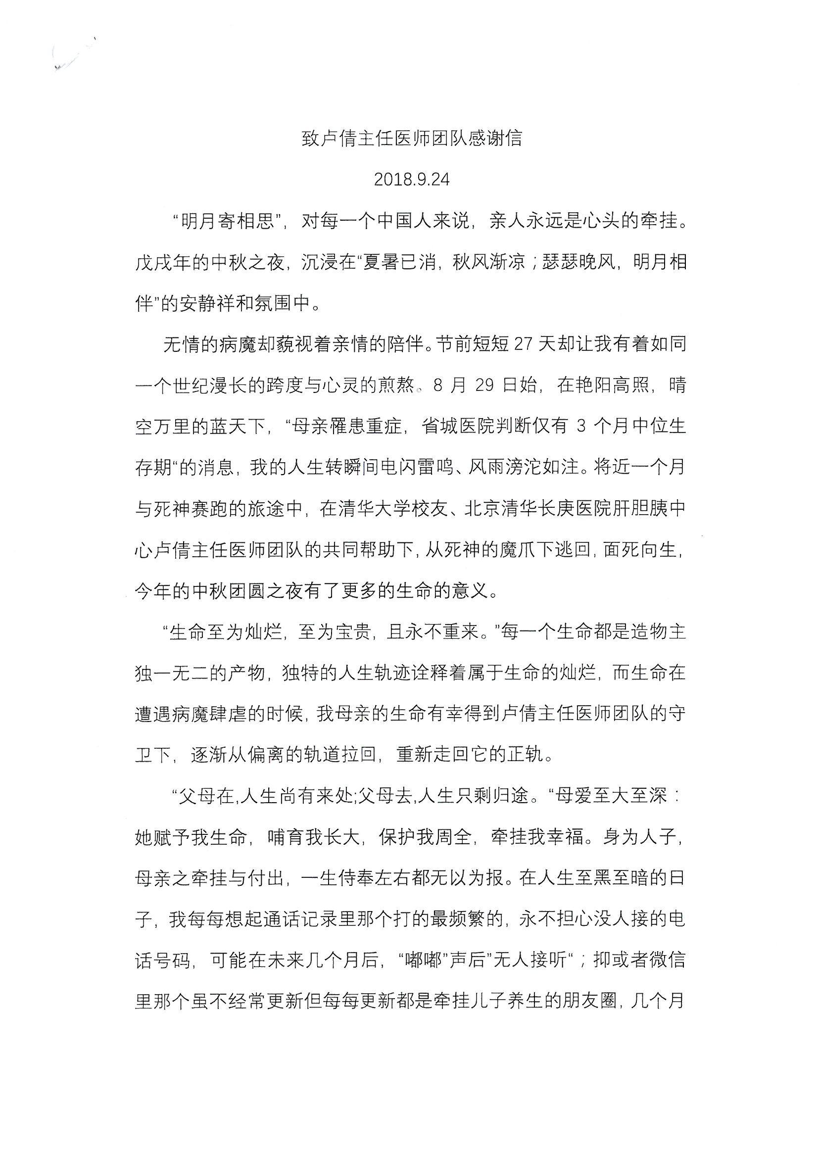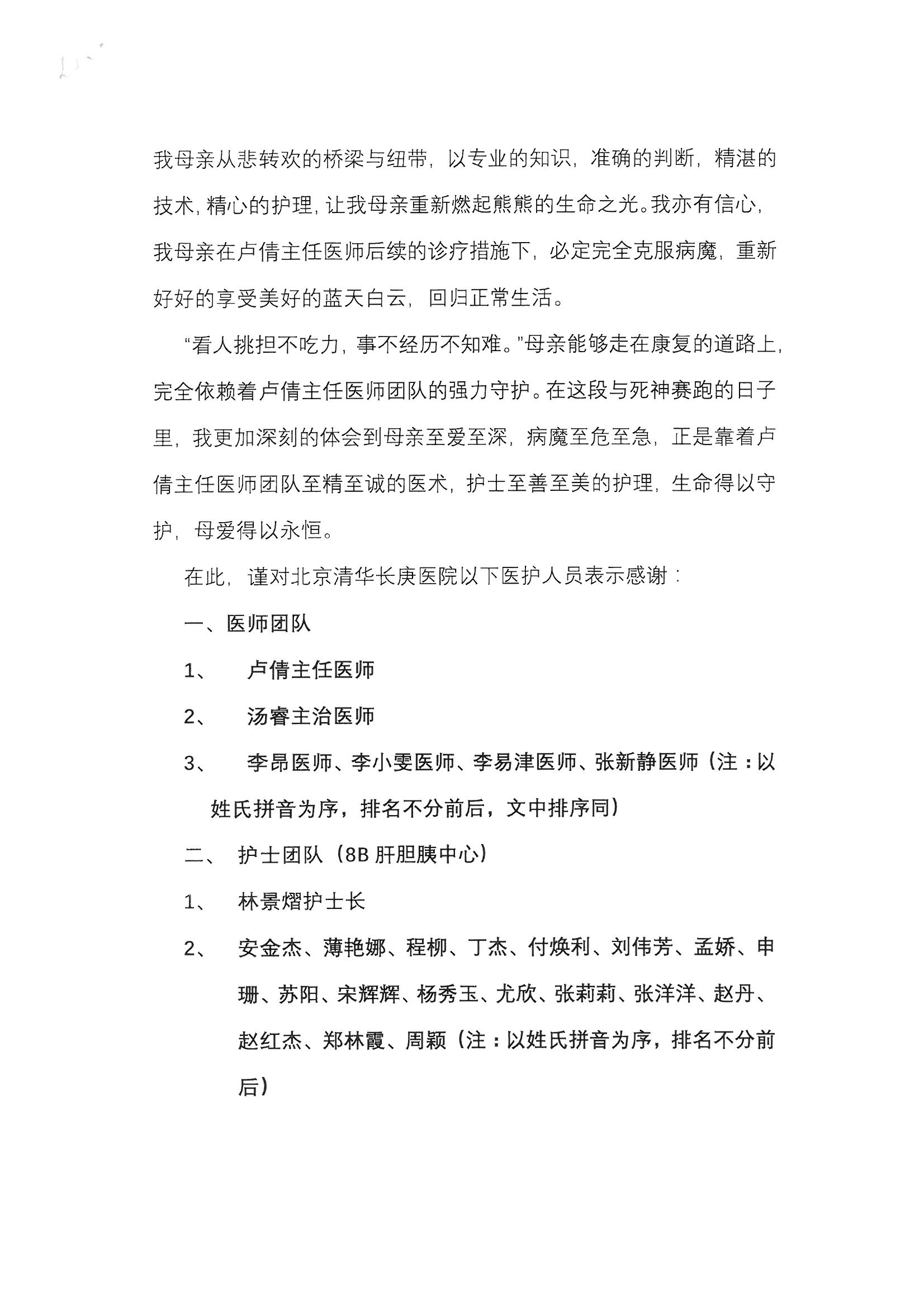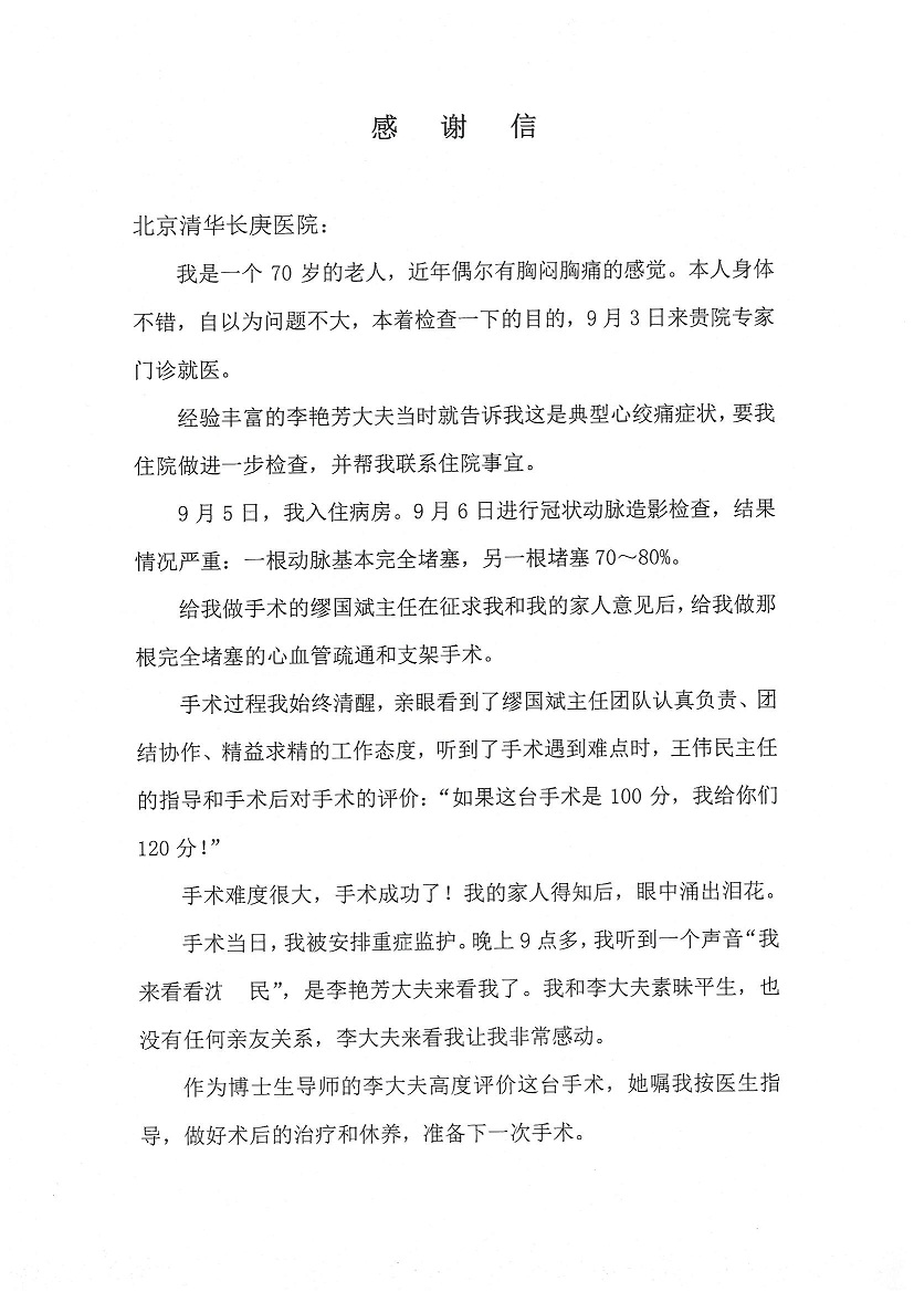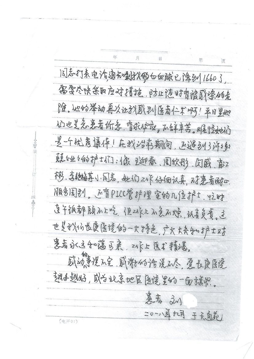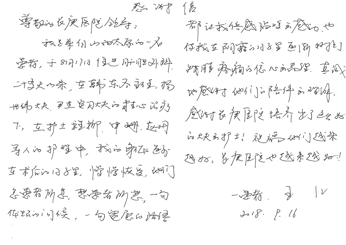 2018年9月我院共接到患者及家属感谢信56封,其中耳鼻咽喉头颈外科胡斌主治医师、尹国平主治医师、曲玥医师,妇产科廖秦平主任医师,肝胆胰外科董家鸿主任医师、卢倩副主任医师、韩东冬副主任医师、杨世忠副主任医师、汤睿主治医师、公磊主治医师、李昂医师、张新静医师、李易津医师、廖梦娇医师、尹杰医师、黄鑫医师、李小雯医师,肝胆胰介入科张琳副主任医师,骨科宋飞副主任医师,血液肿瘤科于卓副主任医师、黄月华主治医师、于凡主治医师、王燕婴主治医师、李婧娴医师,心脏内科缪国斌主任医师、王伟民主任医师、李艳芳主任医师、何榕副主任医师、刘元伟副主任医师、佘飞副主任医师、薛亚军主治医师、周杰医师、赵兰婷医师、王银堂医师、张鸥医师,急诊科张向阳主任医师、王非主治医师、徐婷医师、宋琳琳医师、张鹏书医师、马士程医师、龚晓杰医师,心脏外科沈冬焱副主任医师、李永超医师,儿科季丽娜主任医师,康复医学科潘钰主任医师,口腔科聂小汉主治医师、蒲媛医师,泌尿外科李建兴主任医师、胡卫国副主任医师、陈松副主任医师、唐禹哲医师、吉晓琳医师、王强医师,皮肤科赵邑主任医师,神经内科张小峰主治医师,神经外科王贵怀主任医师、刘东康医师、乌尤图医师、董生医师,胃肠外科李元新主任医师、蔺宏伟副主任医师、刘伯涛主治医师,消化内科王佳主治医师,眼科司山成主治医师、宋丹医师,整形外科杨建民主任医师,临床药学科胡永芳主任药师,护理部林景熠、安金杰、薄艳娜、丁杰、付焕利、刘伟芳、孟娇、申姗、苏阳、宋辉辉、杨秀玉、尤欣、张莉莉、张洋洋、赵丹、赵红杰、郑林霞、周颖,郝小春,汪爱华,段中萍、孙鹤、莫晶晶、汪菲、司红艳、刘晶、程柳、赵丹、张东敬、王金华、韩允、赵雪莲、覃丽妮、郝云茹、张晓晶、徐丽娜、董宁静、徐宁、吴月坤、管琦、刘天玉、李杰,王迎春、周欣彤、闫威、肖江彬、李艳梅、冯天宇、麻晓虎、刘忠涛、周晓雪、付秋菊、鲁欣、王翰婷、杜蓉、余培杰、王佳诗、李伟伟、张磊、张会芳,放射科崔宸,康复治疗师严红松、苏胜民,器官移植协调员郝华媛,医事处刘艳凤、刘达,总务处秦淑华收到具名表扬。特此公告,以资鼓励!