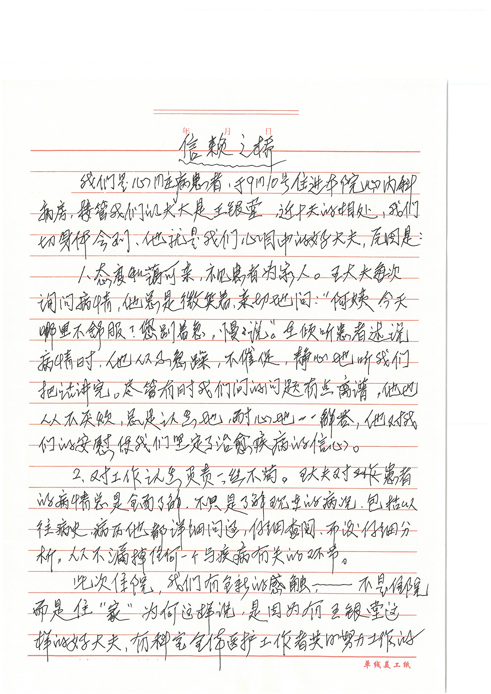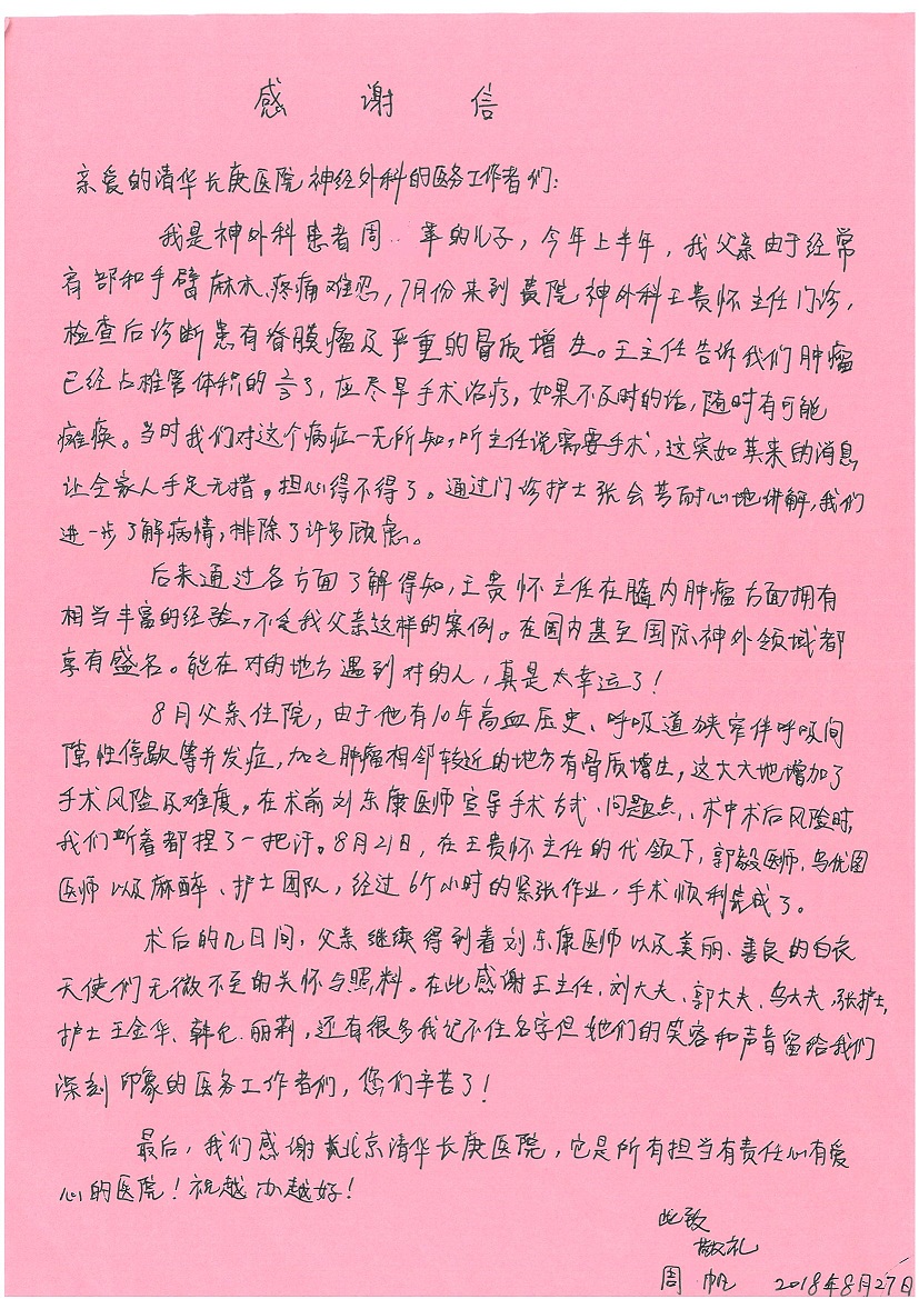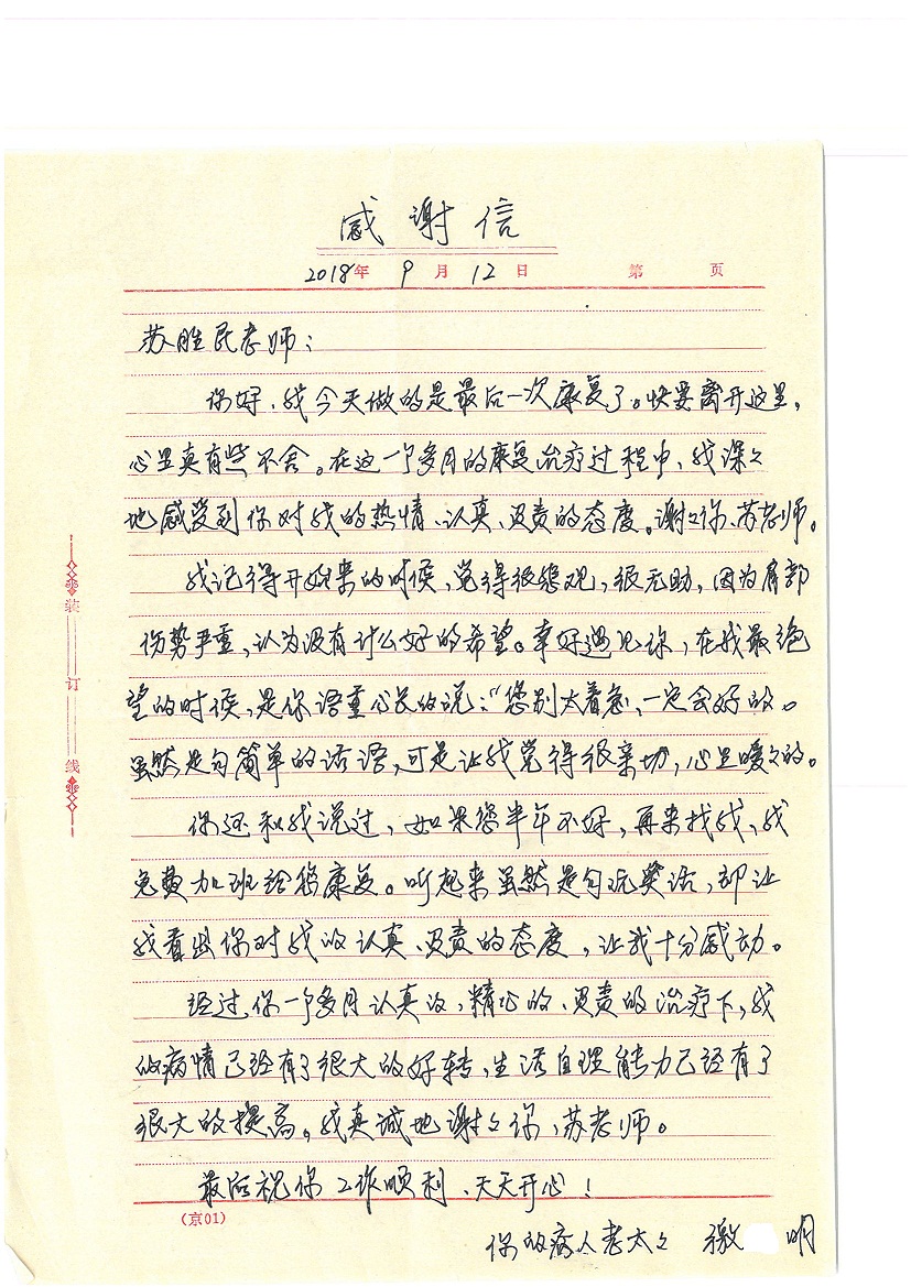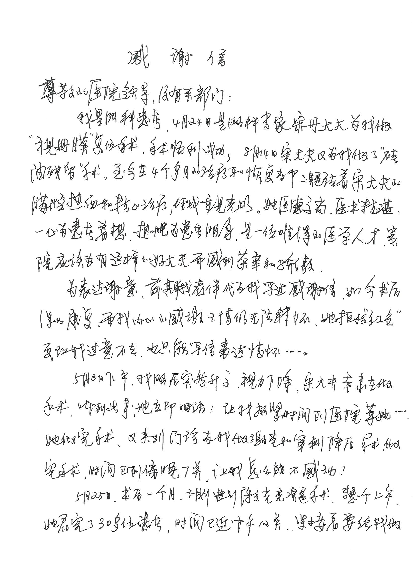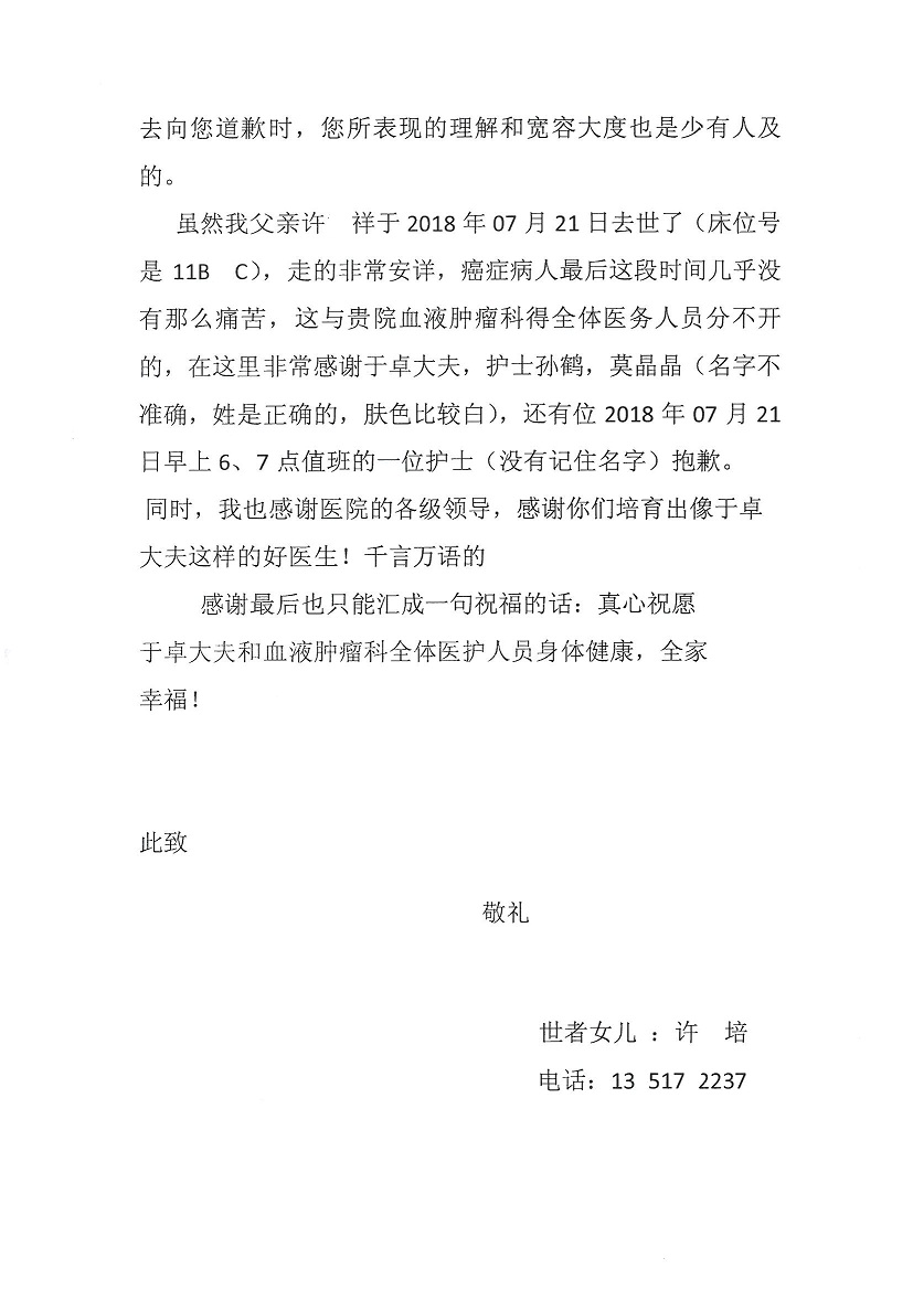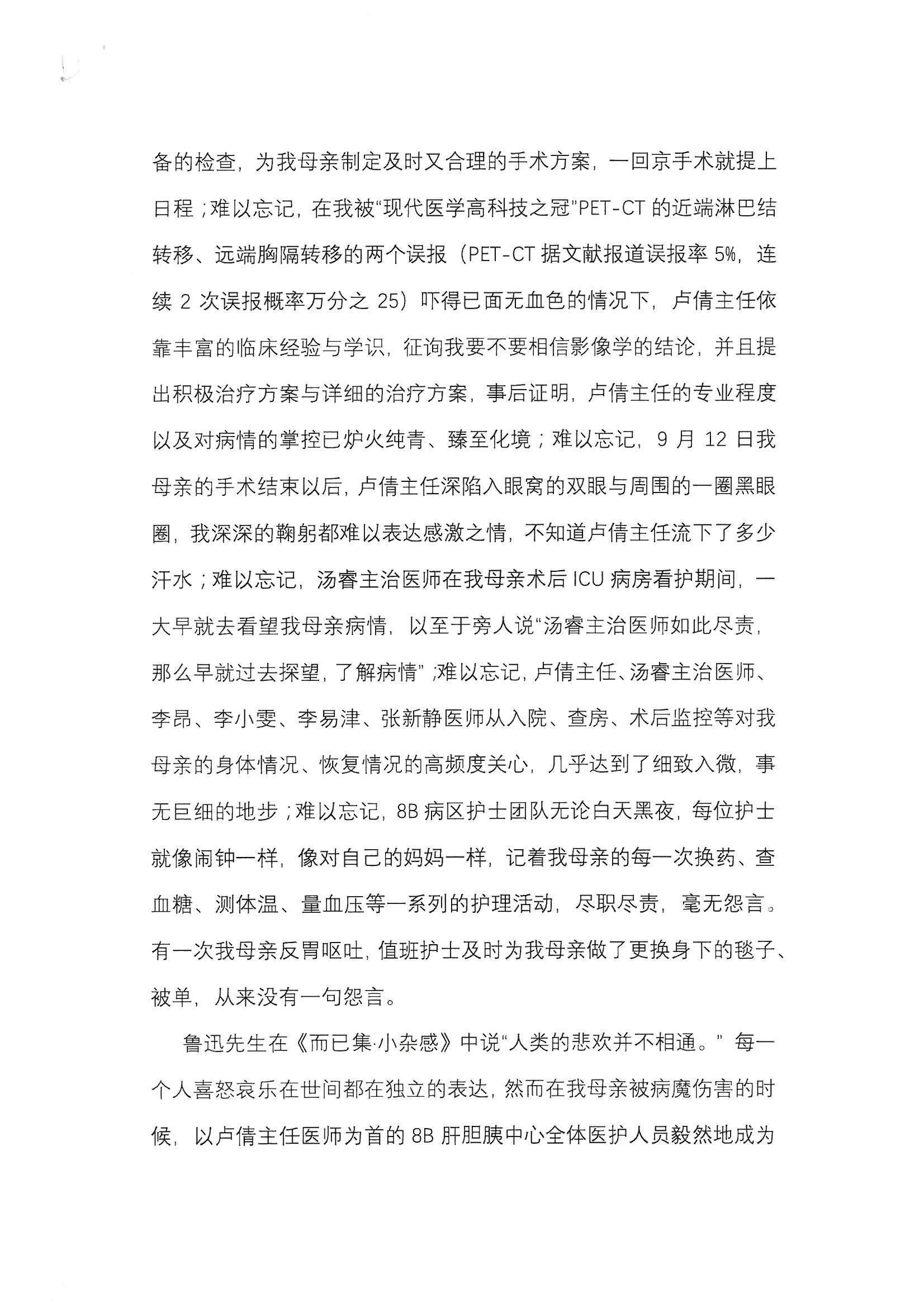 2018年9月我院共接到患者及家属感谢信56封,其中耳鼻咽喉头颈外科胡斌主治医师、尹国平主治医师、曲玥医师,妇产科廖秦平主任医师,肝胆胰外科董家鸿主任医师、卢倩副主任医师、韩东冬副主任医师、杨世忠副主任医师、汤睿主治医师、公磊主治医师、李昂医师、张新静医师、李易津医师、廖梦娇医师、尹杰医师、黄鑫医师、李小雯医师,肝胆胰介入科张琳副主任医师,骨科宋飞副主任医师,血液肿瘤科于卓副主任医师、黄月华主治医师、于凡主治医师、王燕婴主治医师、李婧娴医师,心脏内科缪国斌主任医师、王伟民主任医师、李艳芳主任医师、何榕副主任医师、刘元伟副主任医师、佘飞副主任医师、薛亚军主治医师、周杰医师、赵兰婷医师、王银堂医师、张鸥医师,急诊科张向阳主任医师、王非主治医师、徐婷医师、宋琳琳医师、张鹏书医师、马士程医师、龚晓杰医师,心脏外科沈冬焱副主任医师、李永超医师,儿科季丽娜主任医师,康复医学科潘钰主任医师,口腔科聂小汉主治医师、蒲媛医师,泌尿外科李建兴主任医师、胡卫国副主任医师、陈松副主任医师、唐禹哲医师、吉晓琳医师、王强医师,皮肤科赵邑主任医师,神经内科张小峰主治医师,神经外科王贵怀主任医师、刘东康医师、乌尤图医师、董生医师,胃肠外科李元新主任医师、蔺宏伟副主任医师、刘伯涛主治医师,消化内科王佳主治医师,眼科司山成主治医师、宋丹医师,整形外科杨建民主任医师,临床药学科胡永芳主任药师,护理部林景熠、安金杰、薄艳娜、丁杰、付焕利、刘伟芳、孟娇、申姗、苏阳、宋辉辉、杨秀玉、尤欣、张莉莉、张洋洋、赵丹、赵红杰、郑林霞、周颖,郝小春,汪爱华,段中萍、孙鹤、莫晶晶、汪菲、司红艳、刘晶、程柳、赵丹、张东敬、王金华、韩允、赵雪莲、覃丽妮、郝云茹、张晓晶、徐丽娜、董宁静、徐宁、吴月坤、管琦、刘天玉、李杰,王迎春、周欣彤、闫威、肖江彬、李艳梅、冯天宇、麻晓虎、刘忠涛、周晓雪、付秋菊、鲁欣、王翰婷、杜蓉、余培杰、王佳诗、李伟伟、张磊、张会芳,放射科崔宸,康复治疗师严红松、苏胜民,器官移植协调员郝华媛,医事处刘艳凤、刘达,总务处秦淑华收到具名表扬。特此公告,以资鼓励!