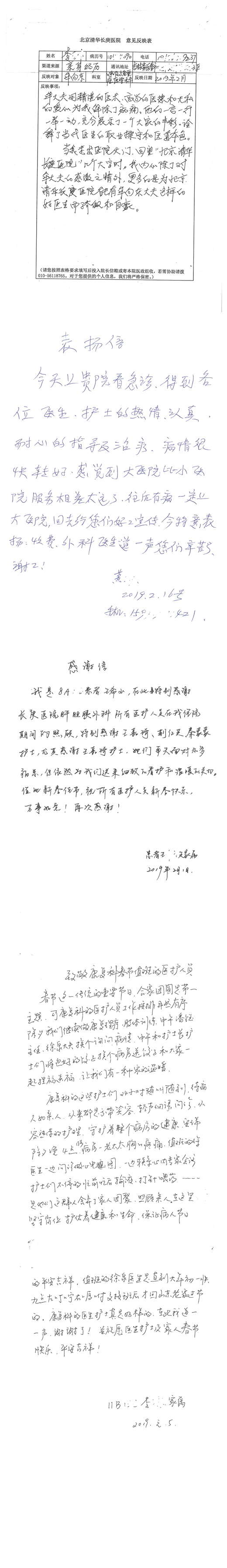 2019年2月,我院共接到患者及家属感谢信59封,其中肝胆胰外科董家鸿主任医师、项灿宏主任医师、石军副主任医师、王良主治医师、陈鹿嘉医师,神经外科郭毅副主任医师、李伟医师,普通外科罗斌主任医师、刘安阳医师、田金翌医师、胡娟医师,胃肠外科李元新主任医师、王峰副主任医师、蔺宏伟副主任医师、刘伯涛主治医师、张骞主治医师、孙孝文主治医师、庄卓男医师,泌尿外科王强副主任医师,心脏外科沈冬焱副主任医师,心脏内科刘芳主任医师、何榕副主任医师,呼吸与危重症医学科牟向东主任医师、郭军副主任医师、赵景全主治医师、张明强医师,神经内科付伟副主任医师、谢珊医师、袁亦方医师,普通内科段敏医师,消化内科蒋绚主任医师、任渝棠主治医师、易婷医师,妇产科廖秦平主任医师、张蕾副主任医师、吕涛副主任医师,康复科潘钰主任医师、徐泉主治医师、孙小花、严红松、蔡小娥、马丽娜,中医科刘承主治医师、李小玲主治医师,耳鼻咽喉头颈外科秦贺副主任医师,医事处侯春悦、谢晶文,总务处杨菲,配送员王金霞,护理部袁娜、张赫、程书祺、姚惠云、翟扬扬、张芳、李丹、胡亚彤、郝津荣、杨敏、杜红愚、方玲、张荣华、于静、王钰宁、张翠翠、周小懿、张璐、郑爽、袁子琪、杨迎春、张雅芝、李娜、沈文燕、王嘉琦、荆红英、秦蒙蒙、肖鑫、覃丽妮、王婕、蒋帅男、杨钰琢、荣程莹、李俊、戴秋菊、范宇丹、胡荫、曹艳飞、刘璐、刘盼以及急诊科、泌尿外科、NICU、门诊药房全体医护人员收到具名表扬。特此公告,以资鼓励!