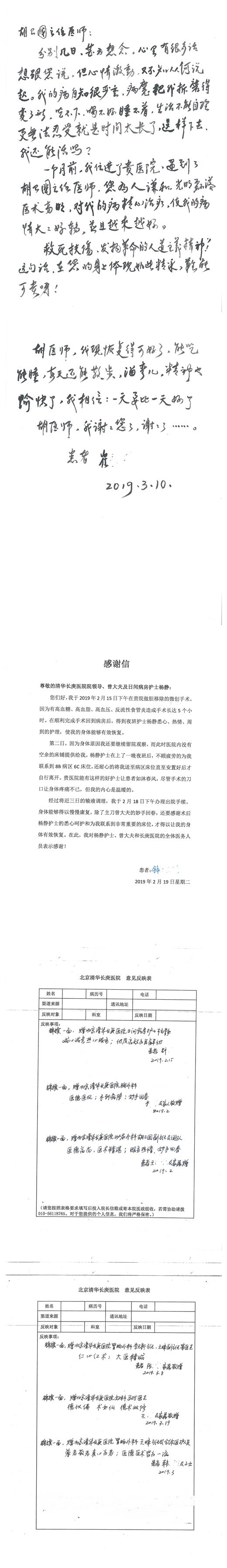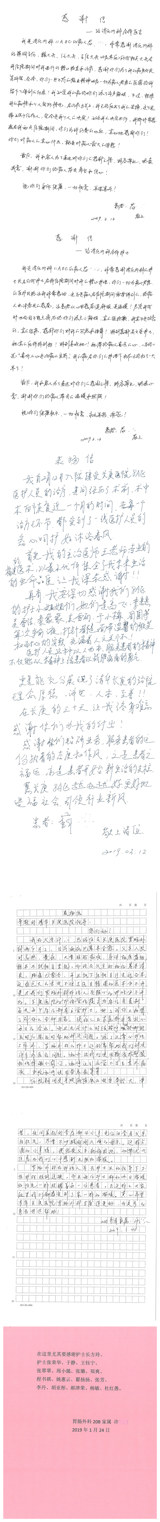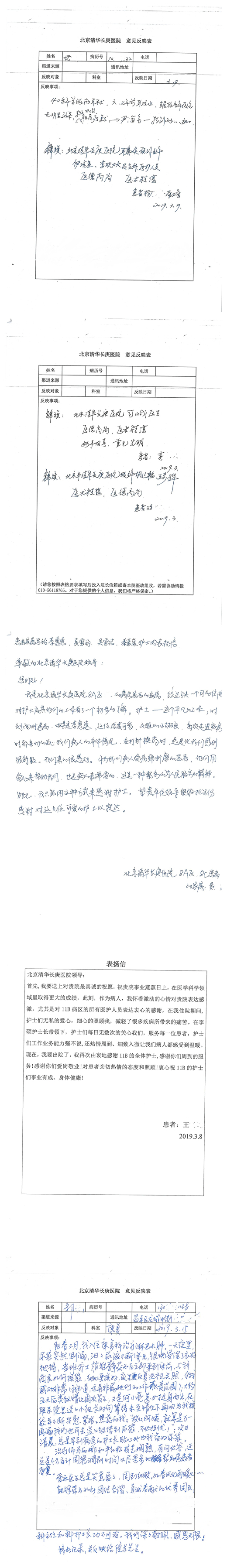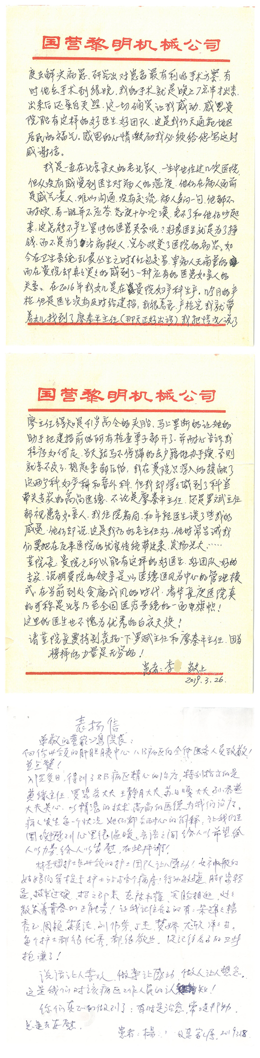 2019年3月,我院共接到患者及家属感谢信59封,其中肝胆胰外科董家鸿主任医师、曾建平主治医师、王良主治医师、公磊主治医师、王学栋主治医师,肝胆介入科张跃伟主任医师,神经外科王贵怀主任医师、章薇主治医师、董生主治医师,普通外科罗斌主任医师、霍东方主治医师、白熠州主治医师,胃肠外科李元新主任医师、王峰副主任医师,骨科潘勇卫主任医师、蔡谞主任医师、陈连旭主任医师、赵喆主治医师,泌尿外科胡卫国副主任医师、王强副主任医师,心脏内科缪国斌主任医师、李艳芳主任医师、刘元伟副主任医师、薛亚军主治医师、周博达主治医师、谢颖主治医师、张鸥医师、易婷医师,呼吸与危重症医学科郭军副主任医师、赵景全主治医师、高博医师,普通内科马序竹主任医师,消化内科蒋绚主任医师、王佳主治医师、任渝棠主治医师、魏正杰医师、吴文星,肝胆内科黄缘主任医师、罗碧芬主治医师、王静月医师、孙春燕医师、苏日嘎医师,妇产科廖秦平主任医师、张蕾副主任医师、马珂副主任医师、王晓茜主治医师,康复医学科潘钰主任医师、李欣主治医师、樊森朝、尹航、马丽娜、严红松、庞雪,皮肤科蒋源副主任医师、温妮医师,眼科胡运韬主任医师、司山成主治医师、王奇骅医师,中医科刘承主治医师、秦建婷医师、赵佳,耳鼻咽喉头颈外科伊海金副主任医师、李欣副主任医师,急诊科王非主治医师,放射治疗科黎功主任医师、李广欣主治医师,检验科赵荣荣,护理部段中萍、袁子淇、杨迎春、高飞、季惠惠、吴雪洁、秦蒙蒙、袁雪丽、于晓梅、周圆、王丽、穆娟、李佳、阴晴、覃丽娜、王英华、赵雅静、何小亮、杨静、王宇、石晓丹、孟令玉、范茄会、王梦欢、张楠、林景熠、宋辉辉、杨秀玉、周颖、安金杰、刘伟芳、丁杰、孟娇、尤欣、张洋洋、李硕、李佳、苏阳、薄燕娜,康复医学科、神经外科、11B全体护士以及心脏内科、神经外科、康复医学科全体医护人员收到具名表扬。特此公告,以资鼓励!