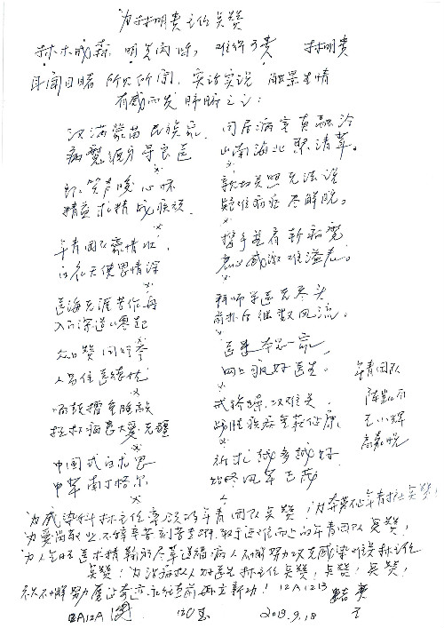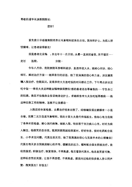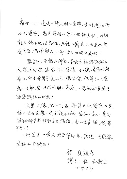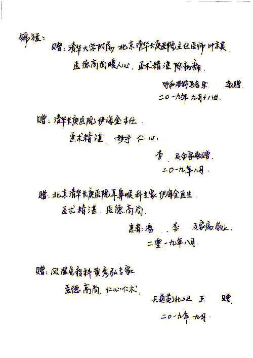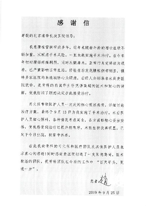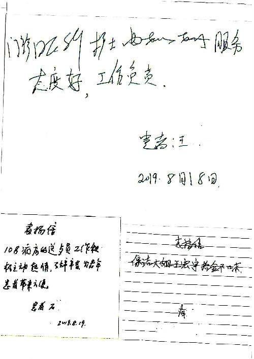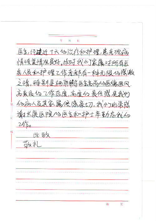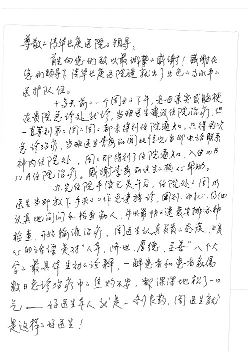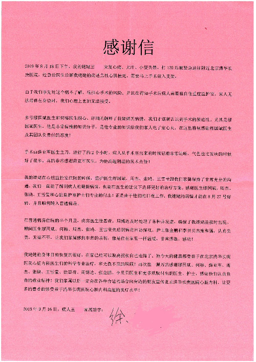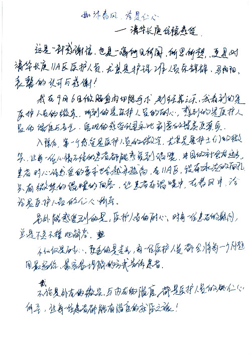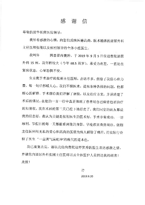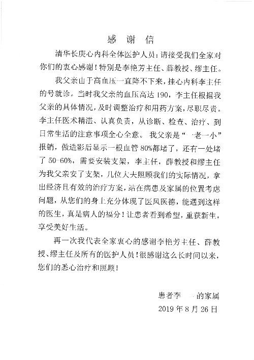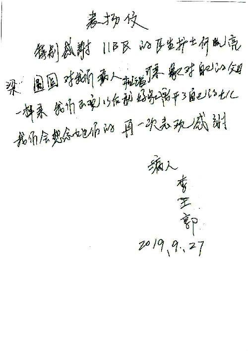 2019年9月,我院共接到患者及家属感谢信55封,锦旗31面,其中耳鼻咽喉头颈外科叶京英主任医师、伊海金主任医师、李欣副主任医师、顼晋昆主治医师,骨科肖嵩华主任医师、刘华玮主治医师,全科医学科王仲主任医师、丁磊副主任医师、邹晓昭医师,神经内科冯新红副主任医师、张小峰主治医师、李秀丽主治医师、杨骊鹏医师、周明医师,胃肠外科李元新主任医师、刘伯涛主治医师,胸腔外科陈东红主任医师,泌尿外科李建兴主任医师、张刚副主任医师,血管外科吴巍巍主任医师、朱融融医师,心脏内科繆国斌主任医师、李艳芳主任医师、刘元伟副主任医师、何榕副主任医师、薛亚军主治医师、周博达主治医师、张鸥医师、周杰医师、王雪莹医师、徐碧荷医师、沈懿医师、翟彦龙技师,呼吸与危重症医学科赵景全主治医师、高博医师、刘金哲医师,康复医学科潘钰主任医师、李欣主治医师、翟晓雪医师、李颜杝治疗师、李华晨治疗师、赵靖宇治疗师、蔡小娥治疗师,放射治疗科黎功主任医师、李广欣主治医师,眼科胡运韬主任医师、司山成主治医师,感染性疾病科林明贵主任医师,消化内科任渝棠主治医师,风湿免疫科黄彦弘主任医师,儿科季丽娜主任医师,医患办武丽,医事处李晓娜、刘静雅、张勇涛、乔威如、杨新蕊,TC王宏宇、李雪,护理部:管琦、赵杰、范佳慧、张楠、周媛、王宇、高稚、吴春慧、孟令威、周营利、张金鹏、李贝贝、于爱洋、蒲媛、何晓亮、梁园园、崔鑫、刘杰、李星阳、薄艳娜、送辉辉、马阳阳、袁馨、张冰、陈慕洁、刘娅、刘晶,胸腔外科病区全体医护人员、血管外科全体护理人员、神经内科全体医护人员、心脏内科全体医护人员、全体全体医护人员、全科医学科全体医护人员、医患办全体员工收到具名表扬。特此公告,以资鼓励!