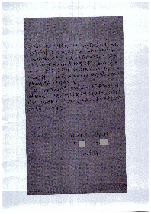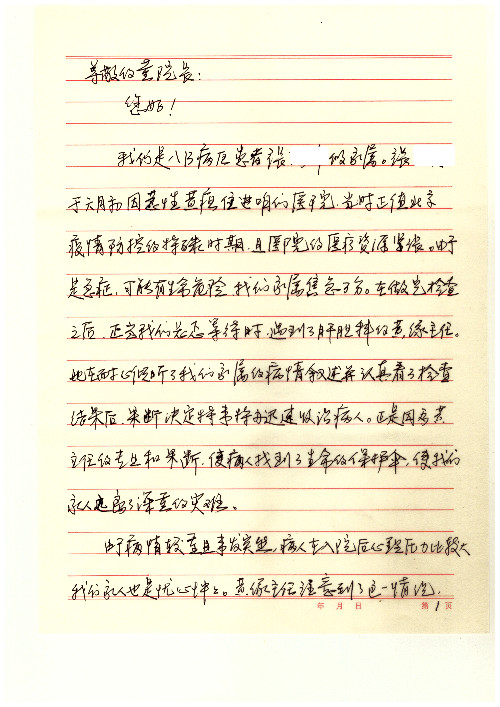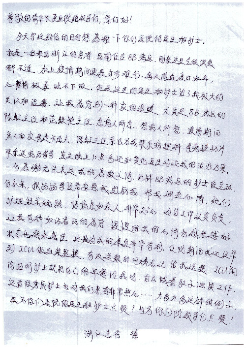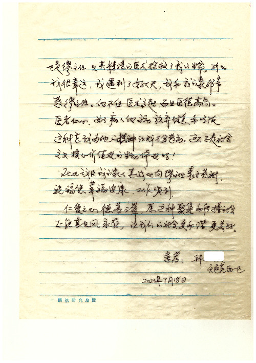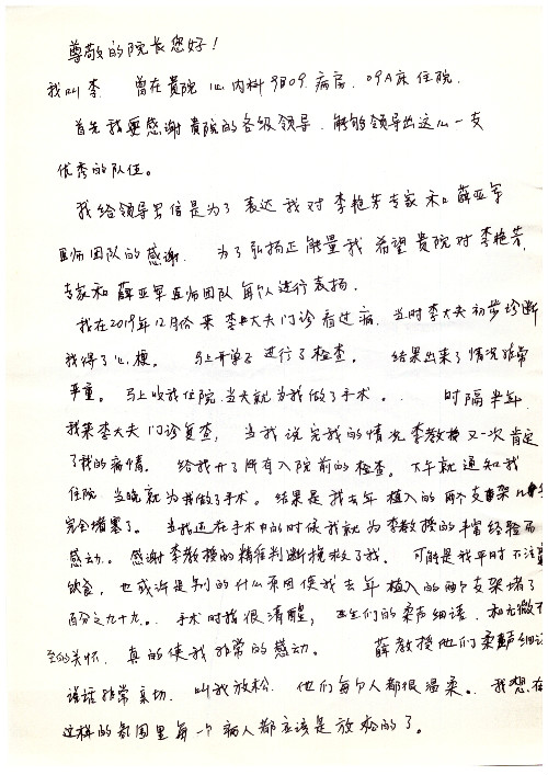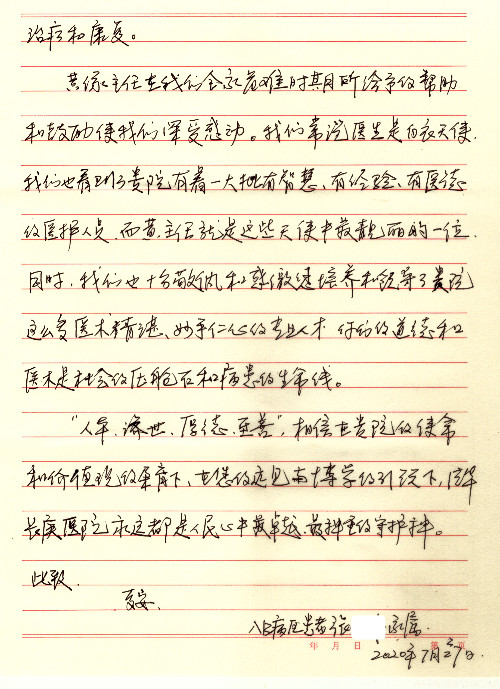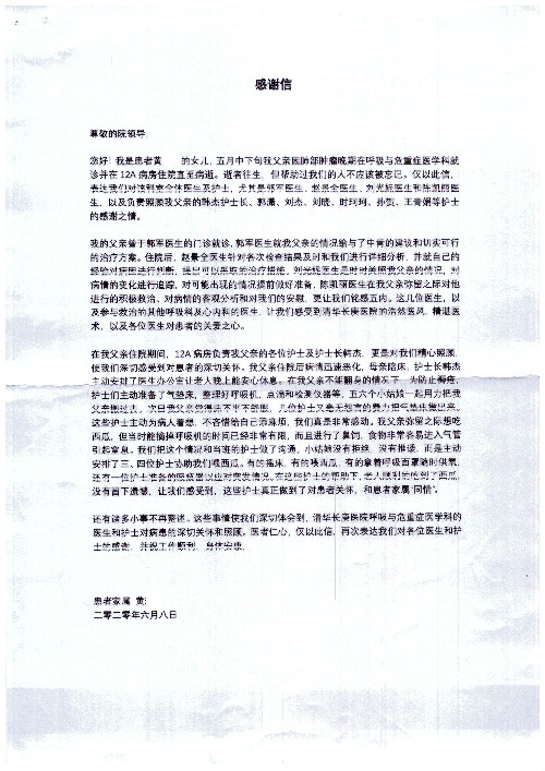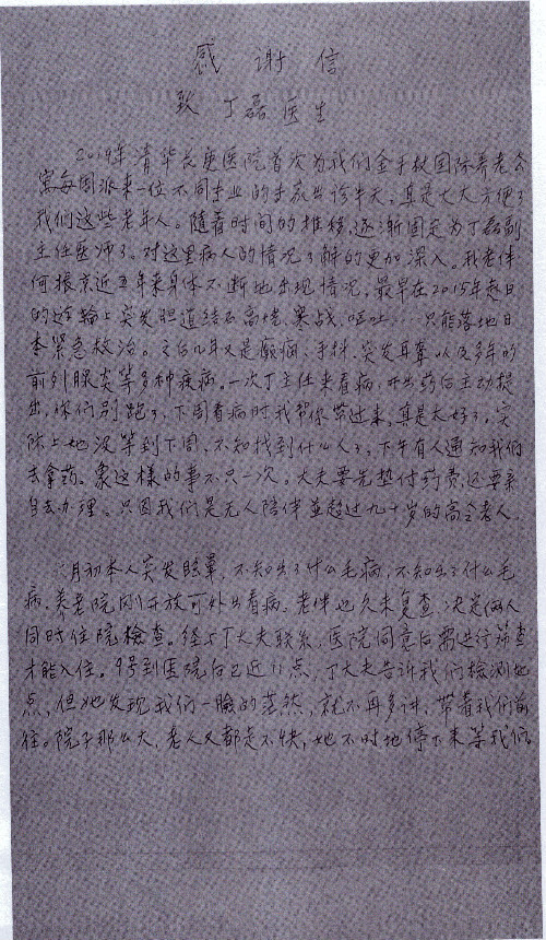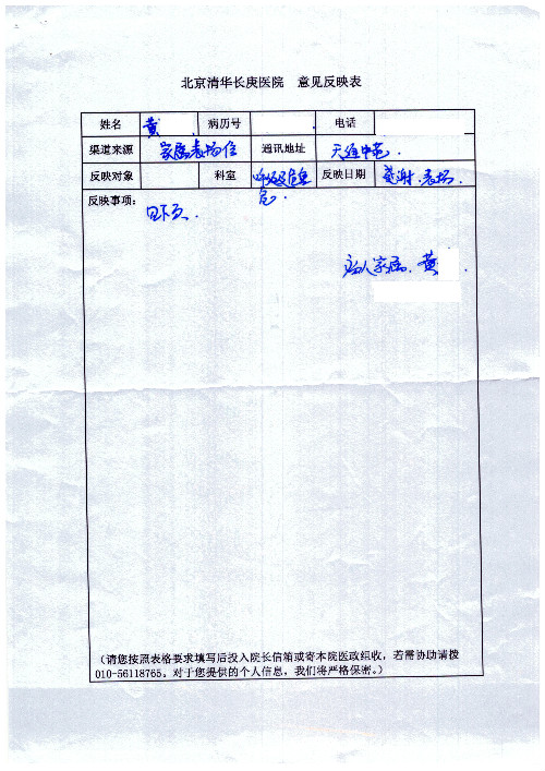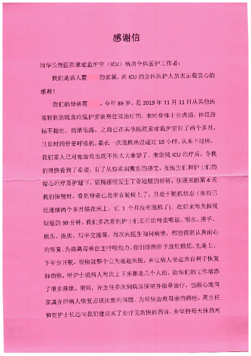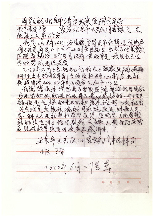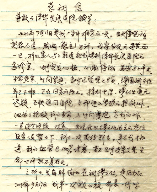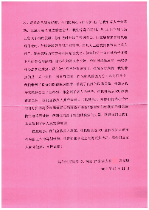 公告北京清华长庚医院患者及家属感谢信【2020年7月份】