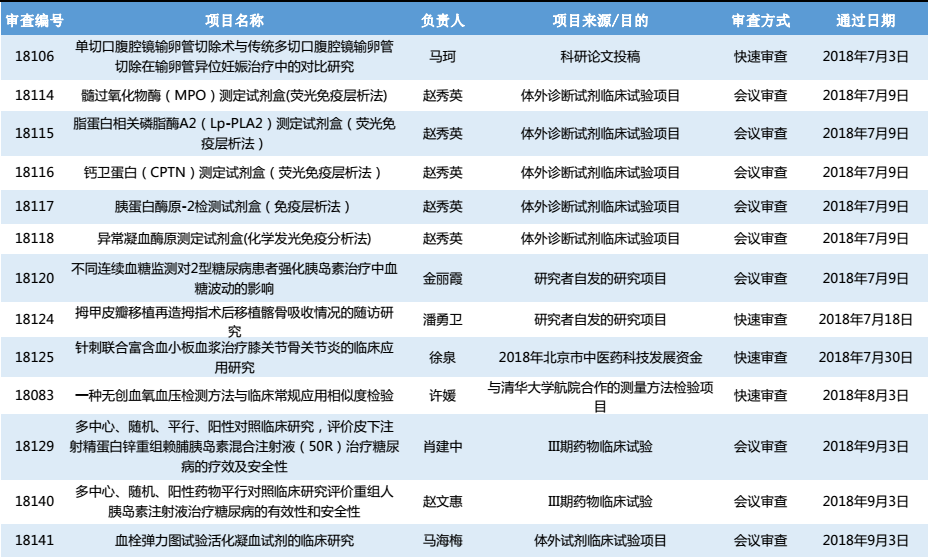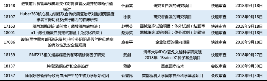 2018年第3季度伦理审查通过信息