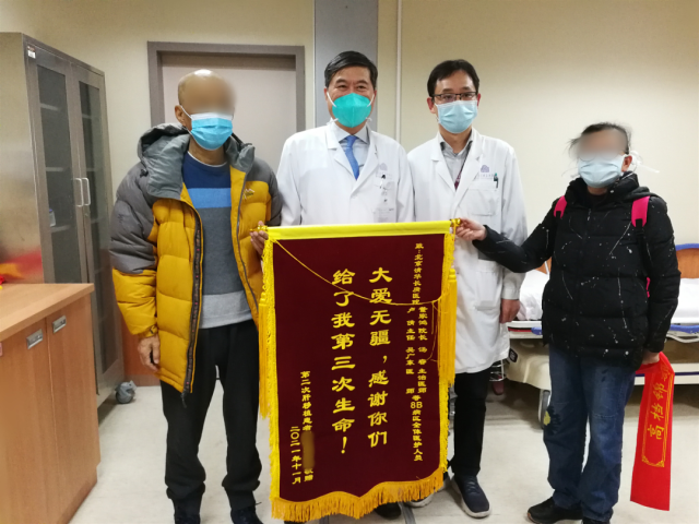 出院时,激动的刘先生为董家鸿送上了锦旗,“非常感谢董院长和这里的所有医护。他们的这份慈悲心,让我更有信心和力量去对抗疾病了。”