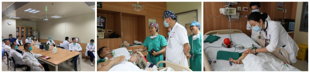 8时,科室交接班开始。卢倩老师在听完交班汇报之后,进行了例行宣导,带领全科医师查房,重点关注近期已接受肝移植治疗的重症患者、病情出现波动的患者以及即将接受劈离式肝移植的患者。查房过程中,卢老师耐心地向患者家属讲解病情的变化及手术的进展,展开心理疏导与人文关怀,同时细致地指出医学生的不足和需要调整改进的医疗事项。